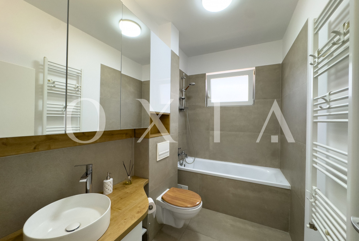 Proprietatea este la prima inchiriere si beneficiaza de amenajari moderne: usa intare metalica antiefractie, usi interioare celulare, placi de gresie si faianta, parchet laminat, ferestre PVC cu geam tripan, rulou electric (in dormitor), vopsea lavabila, etc.