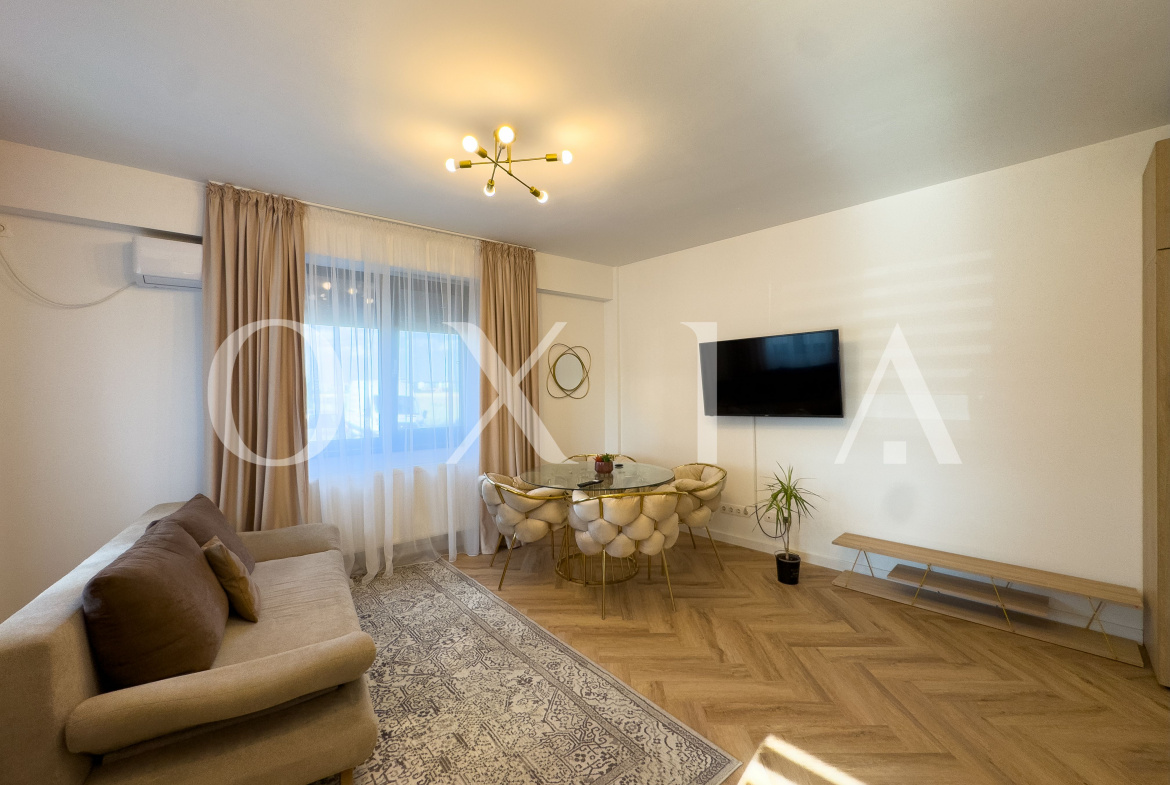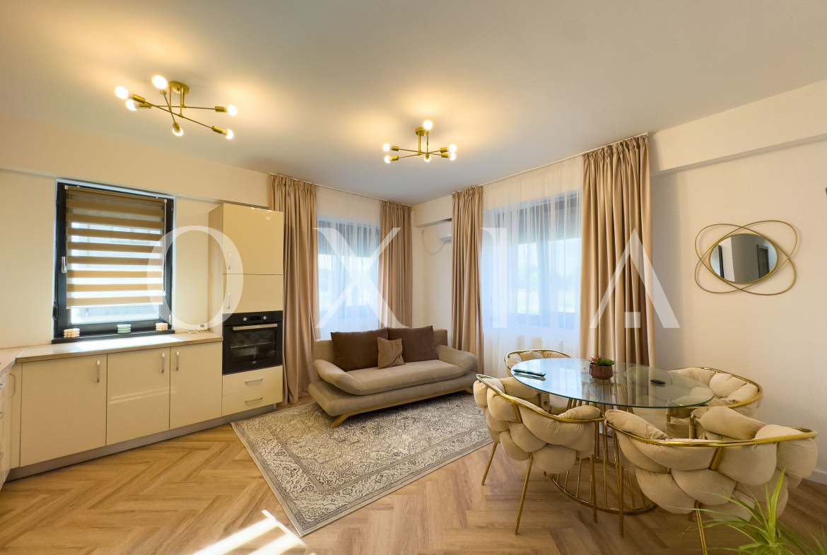 OXIA ofera in exclusivitate spre inchiriere un apartament cu 2 camere, situat in Giroc, pe Bulevardul Aviatiei, in imediata apropiere a Liceului David Voniga si la doar cativa pasi de Luna Cafe.