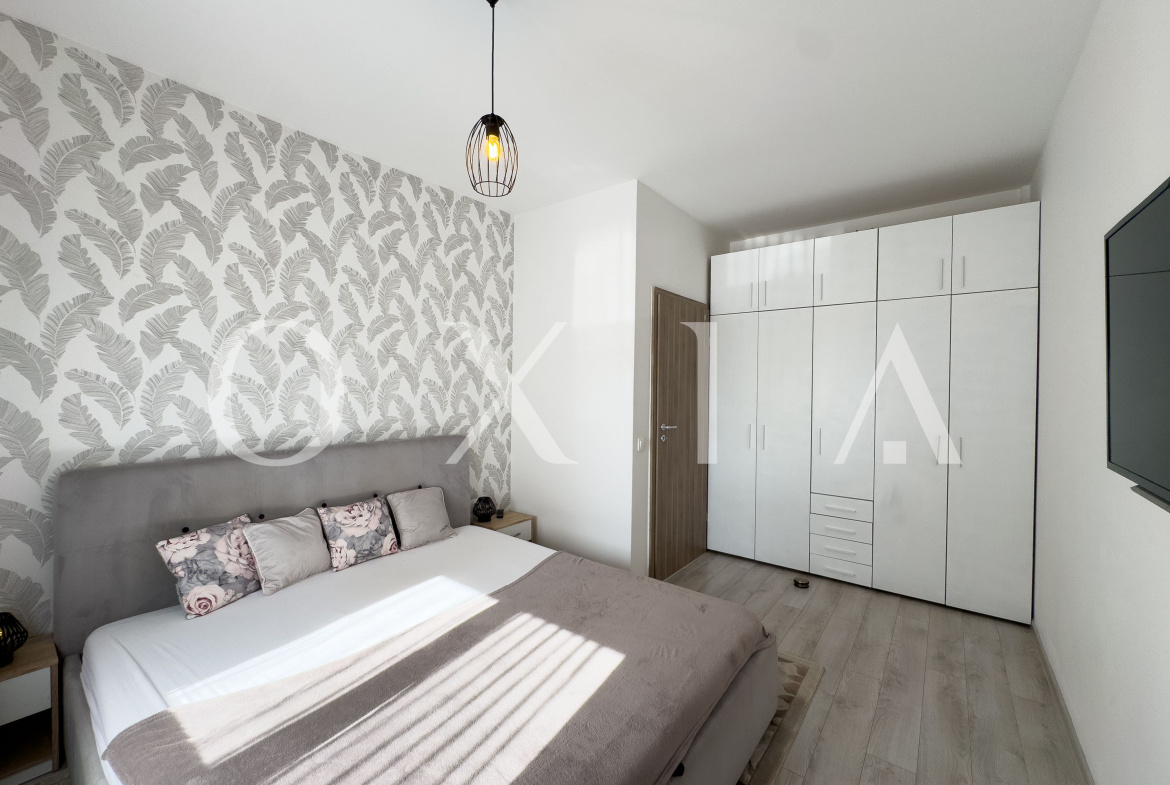 Apartamentul beneficiaza de finisaje moderne: usa metalica la intrare, usi interioare celulare, parchet LVT, gresie si faianta, tamplarie PVC cu geam termopan, rulouri exterioare din PVC, pereti finisati cu vopsea lavabila.