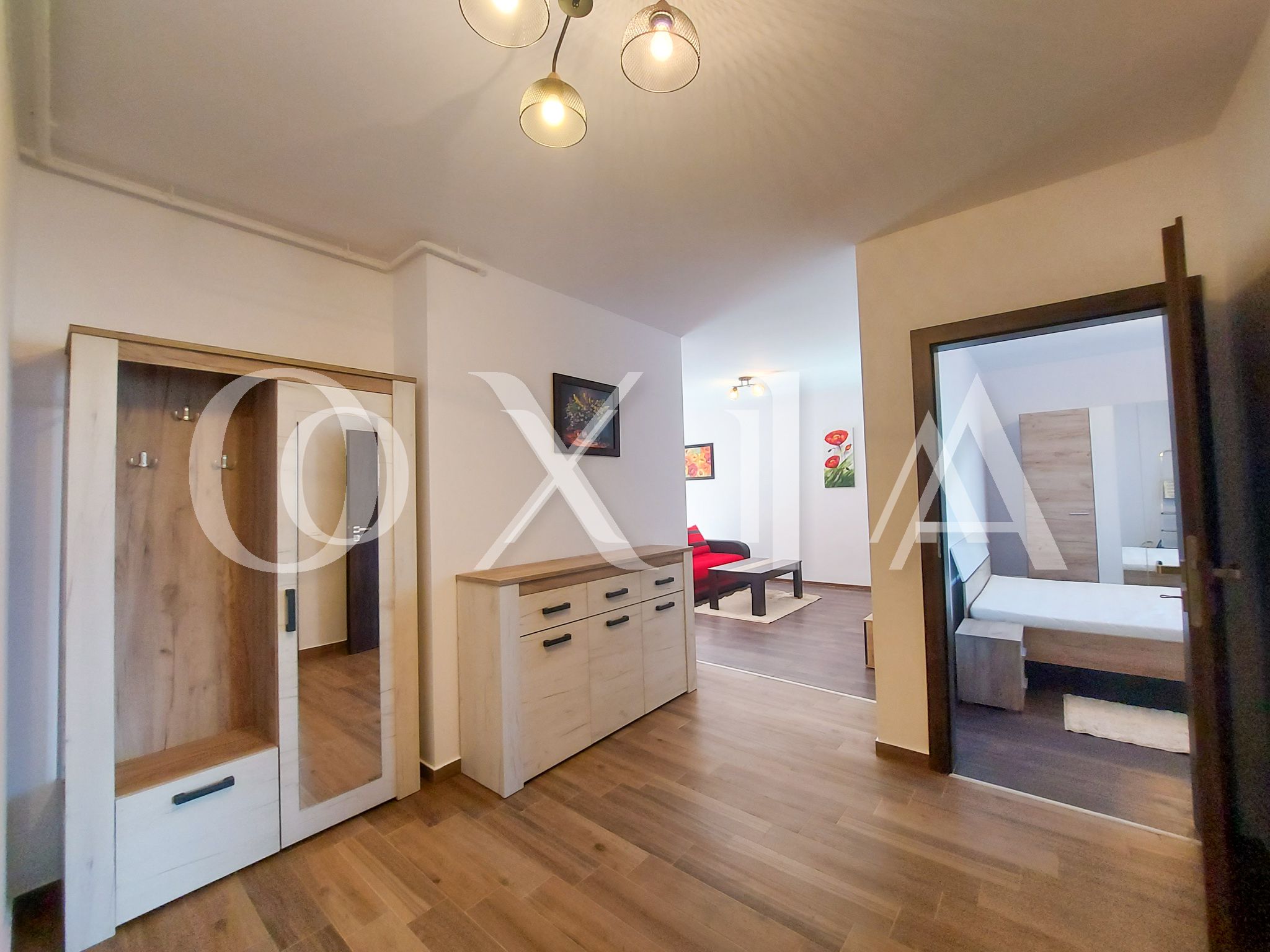 OXIA Imobiliare ofera spre inchiriere apartament cu 2 camere in Timisoara, zona Aradului, Complex Rezidential IRIS, situat la etajul 1 din 9, decomandat, cu suprafata de 56 MP utili + 6 MP balcon, compartimentat astfel: