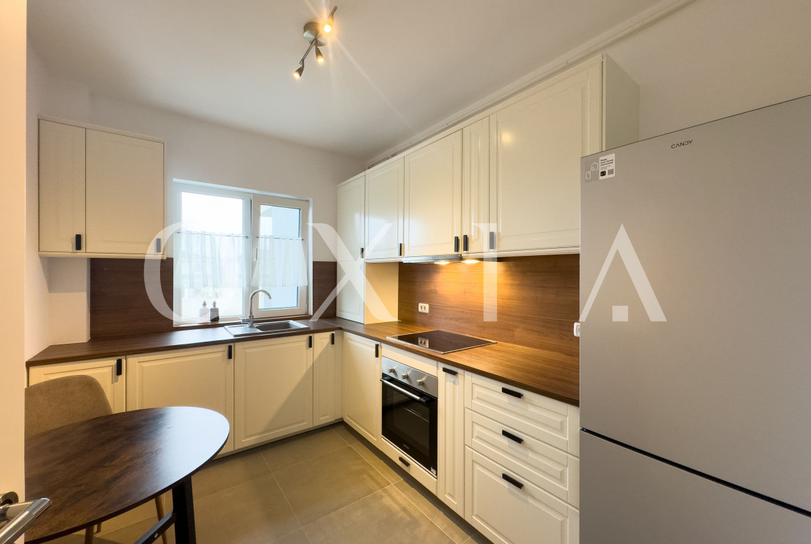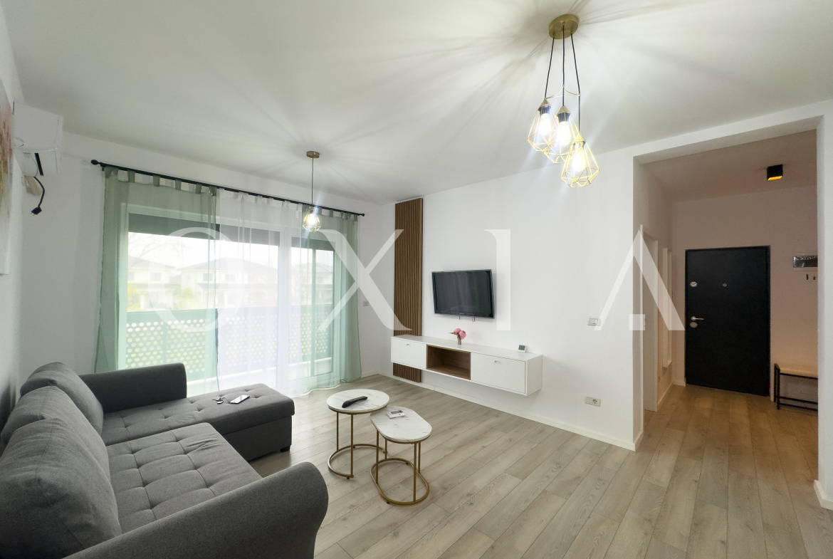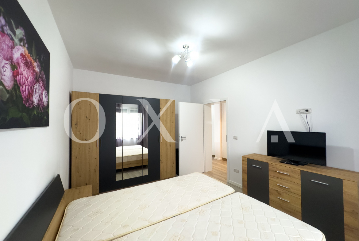 OXIA The Real Estate Agency ofera spre inchiriere apartament cu doua camere in Dumbravita, Bulevardul Petre Tutea, situat la etajul 1, cu suparafata de 56 mp utili + 4 mp balcon, compartimentat astfel