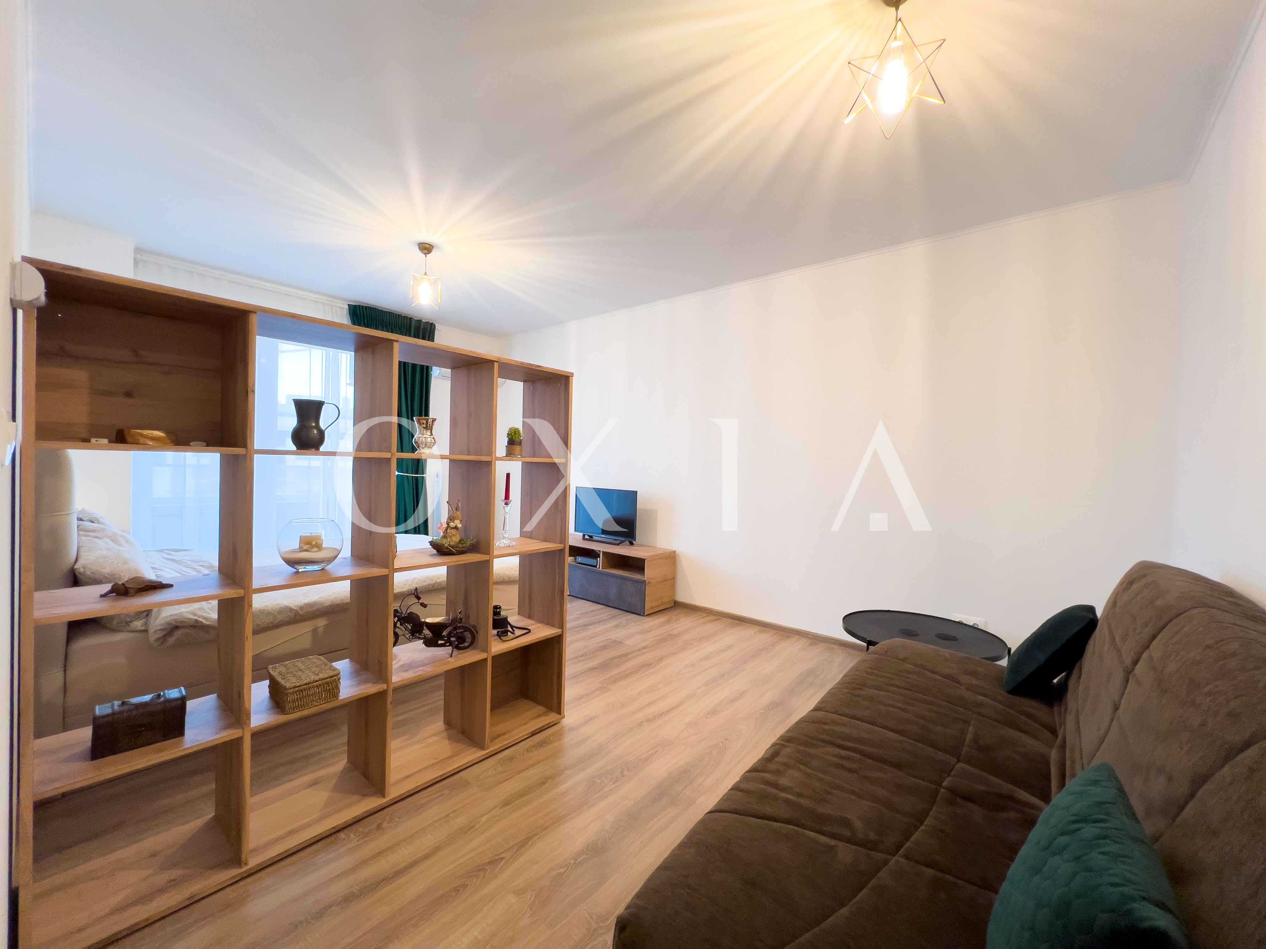 OXIA prezinta in exclusivitate spre inchiriere apartament cu 1 camera in Timisoara, zona Aradului, strada Marginii, situat la etajul 9 din 10 ( imobil cu 2 lifturi ), decomandat, cu suprafata de 40 MP utili + 8 MP terasa, compartimentat astfel: