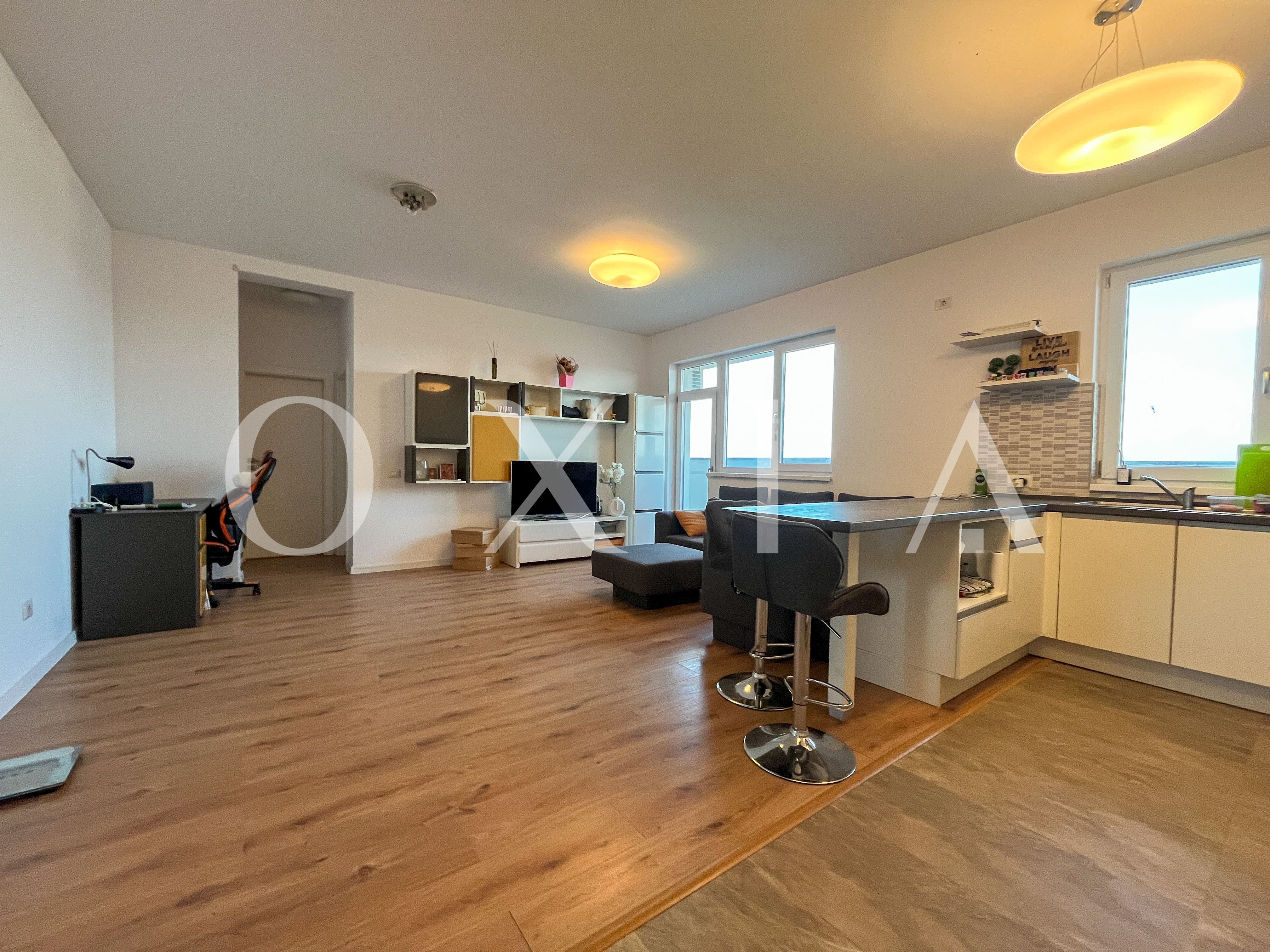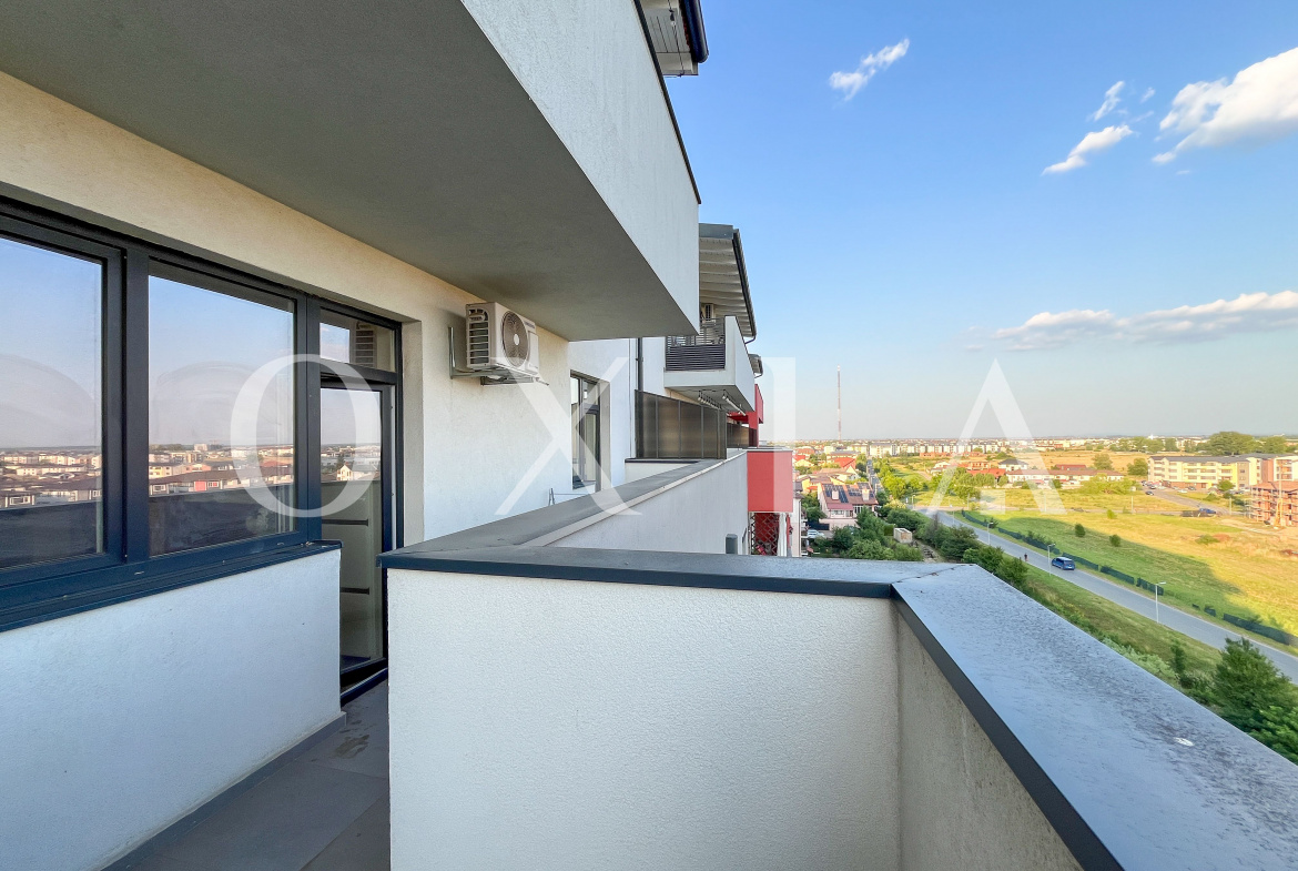 OXIA prezinta spre vanzare apartament cu 3 camere, situat in Timisoara, zona Girocului, in proximitatea benzinariei Eso, la etajul 7/8, in imobil dotat cu 2 lifturi, semidecomandat, cu suprafata de 68,64 mp utili + 27 mp terasa, compartimentat astfel: