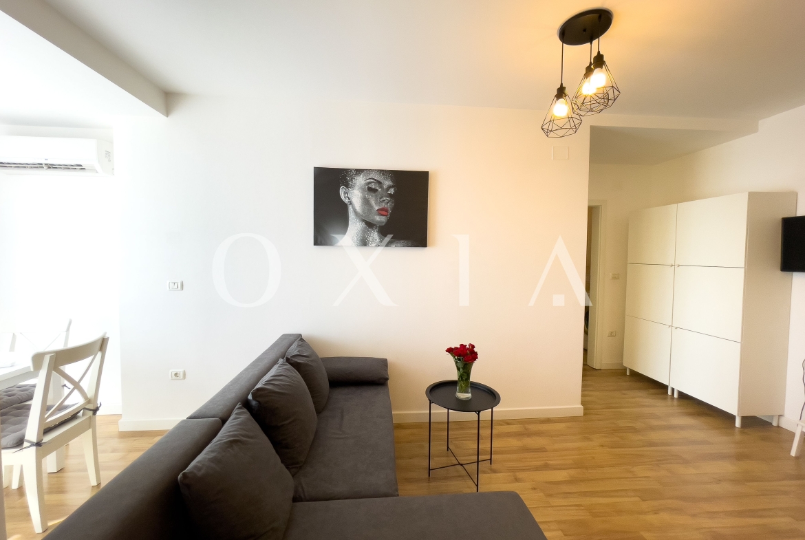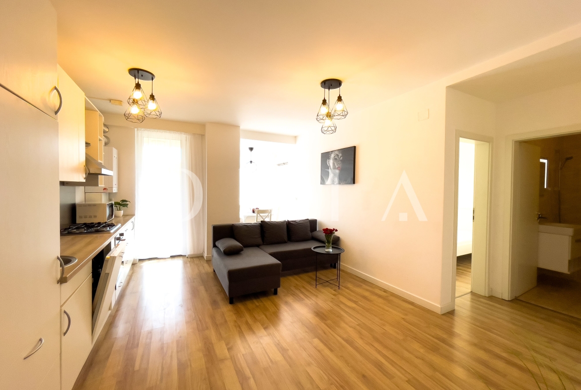 OXIA prezinta spre inchiriere in exclusivitate apartament cu 2 camere in Timisoara, zona Soarelui, complex rezidential Rebreanu Towers, situat la etajul 2 din 11 ( imobil cu lift ), semidecomandat, compartimentat astfel: