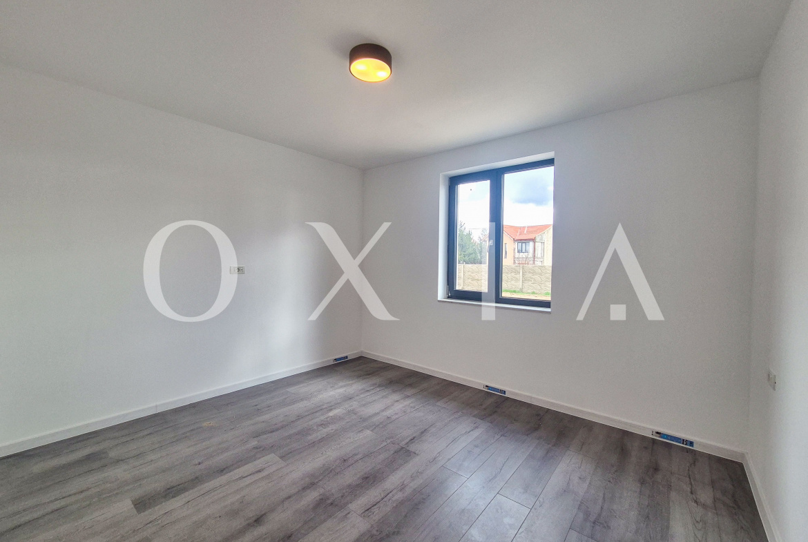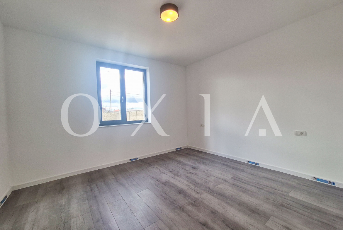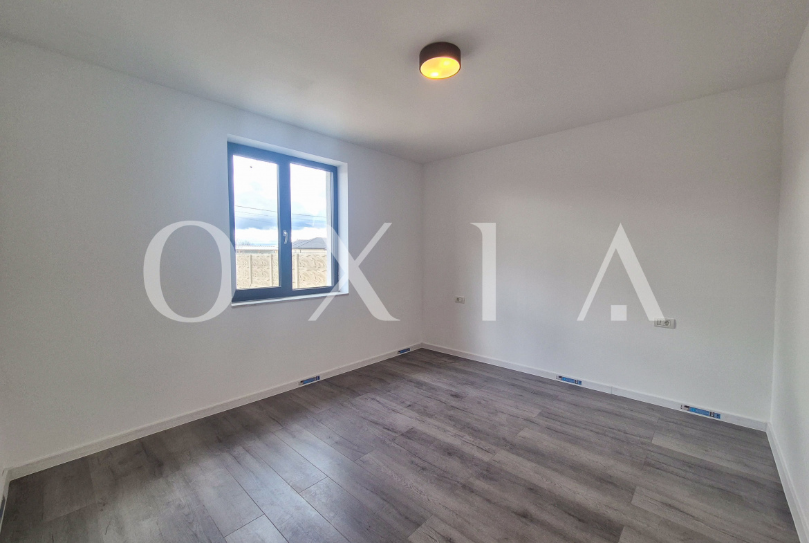 Proprietatea se vinde finisata la cheie, cu ferestre tripan cu bagheta calda, glafuri din granit la interior si exterior, usi interioare PortaDoors, usa de intrare PVC, placi de gresie si faianta, parchet laminat si vopsea lavabila.