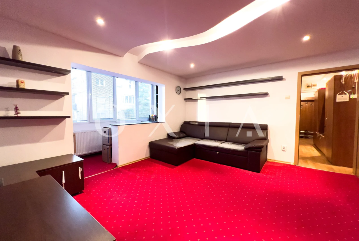 OXIA prezinta in exclusivitate spre vanzare apartament cu 3 camere in Timisoara, zona Simion Barnutiu, strada Intrarea Lugojului, situat la etajul 1 din 4, semidecomandat, cu suprafata utila de 64 MP, suprafata masurata de 72 MP, compartimentat astfel