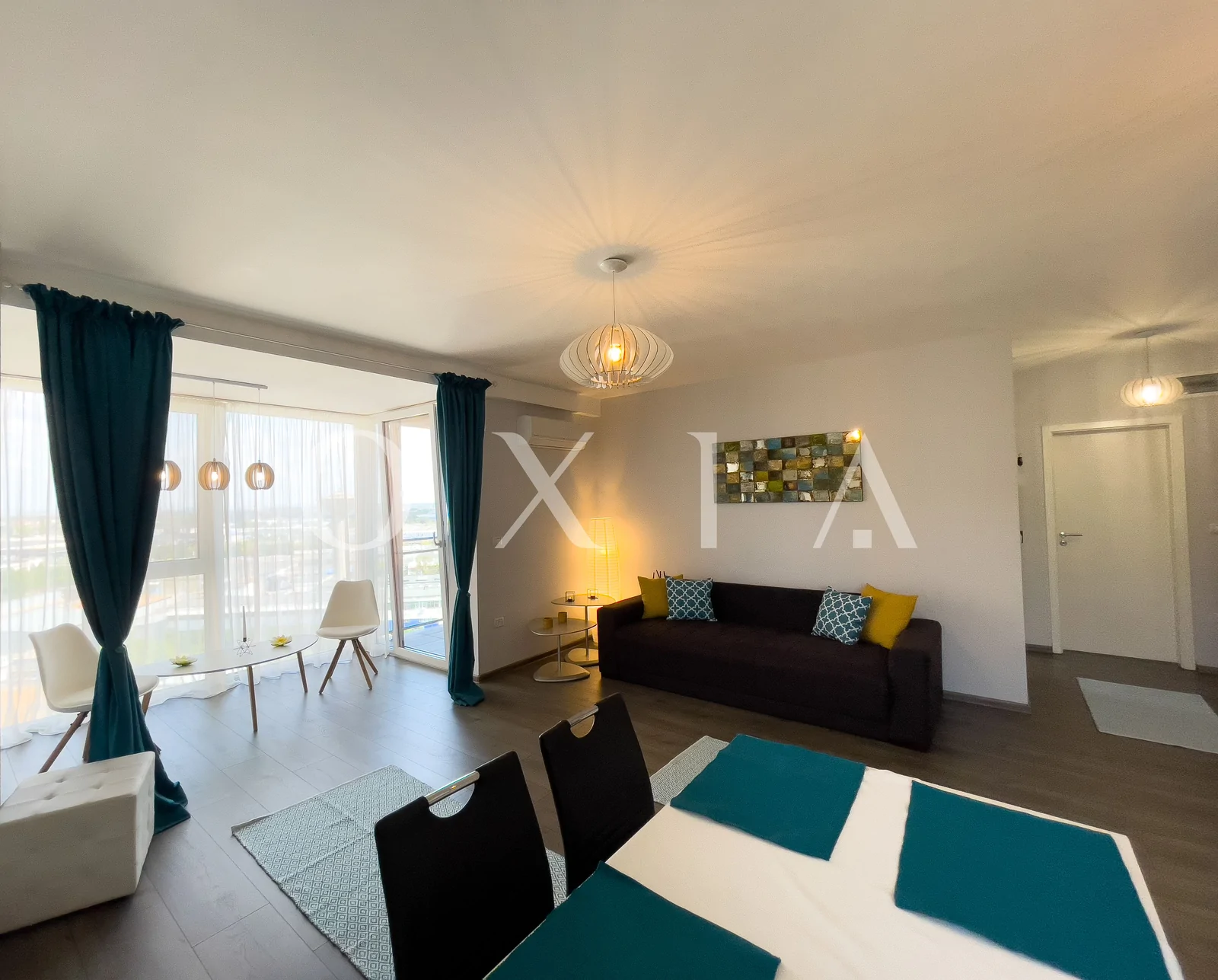 OXIA prezinta spre inchiriere apartament cu 2 camere in Timisoara, zona Soarelui, situat la etajul 10 din 11 ( bloc nou ), cu suprafata de 52 mp+4 mp terasa, compartimentat astfel:
