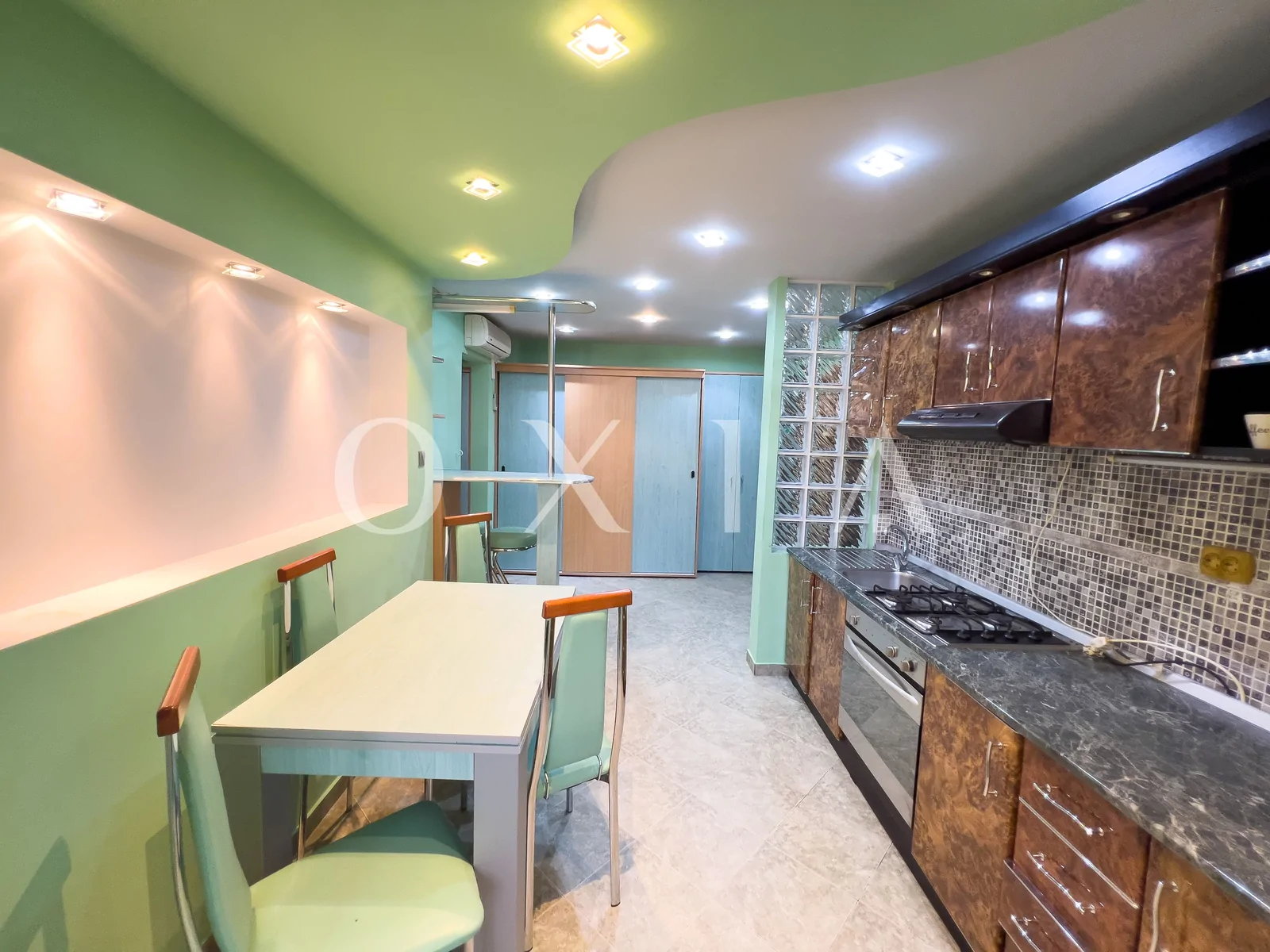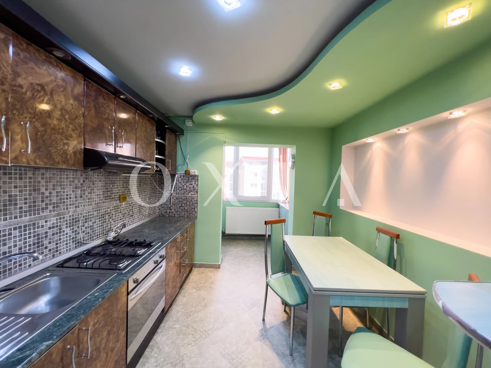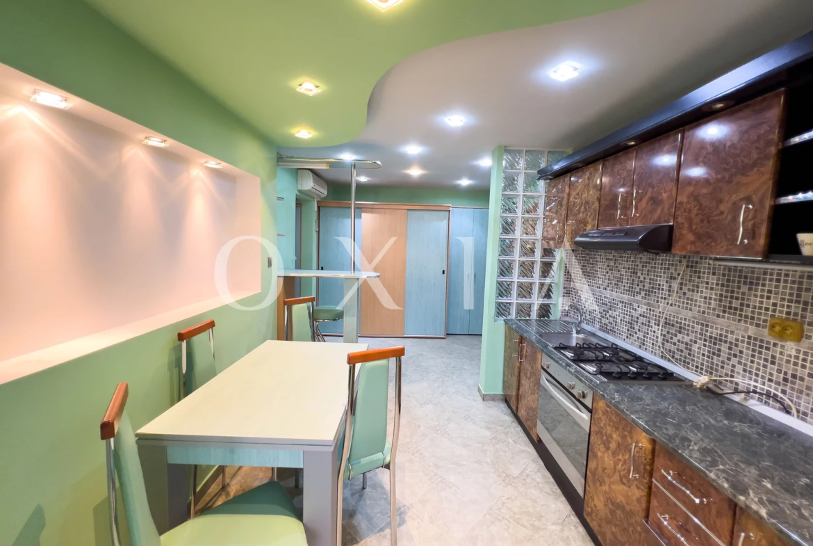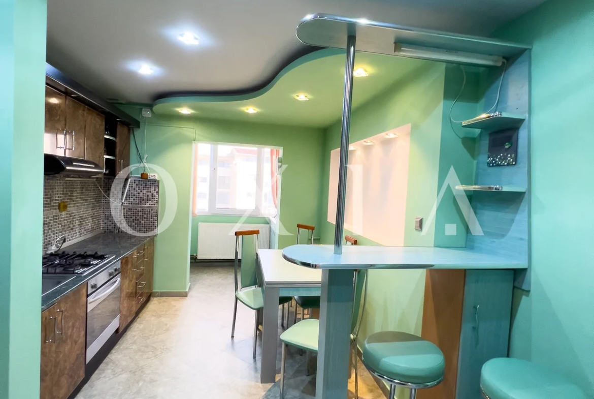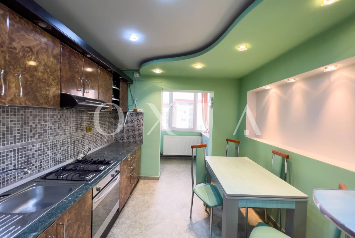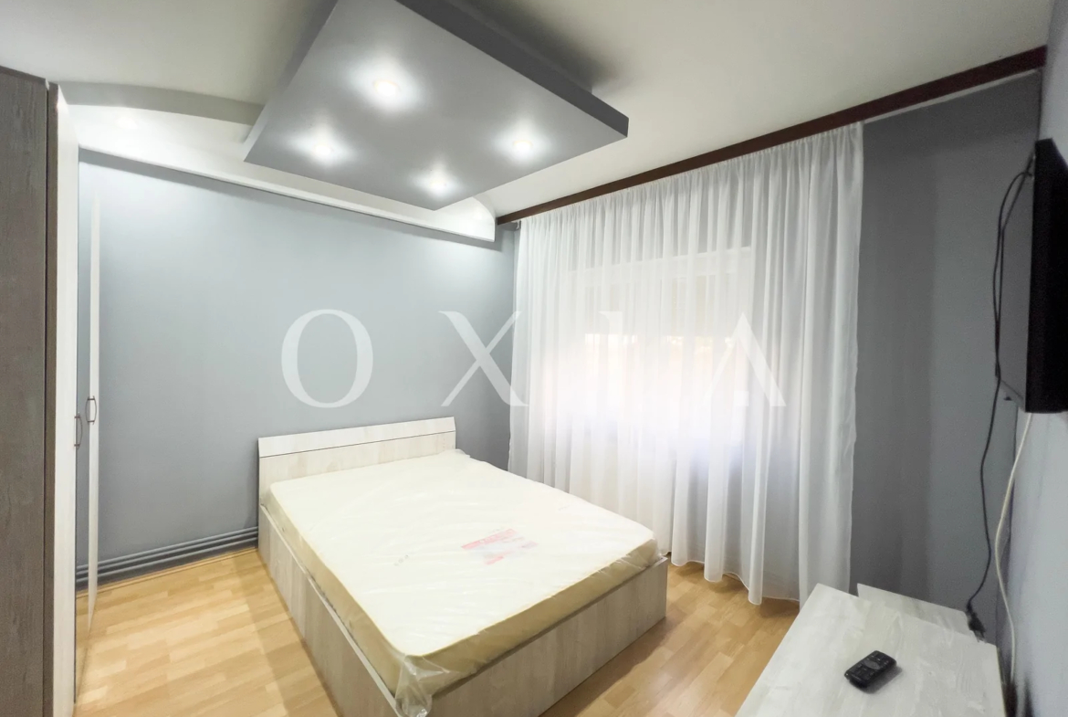 Apartamentul este renovat si beneficiaza de amenajari moderne : usa intrare metalica, usi interioare din sticla, ferestre PVC cu geamuri reflexive, placi de gresie/faianta, parchet laminat, vopsea lavabila, rulouri exterioare, etc.