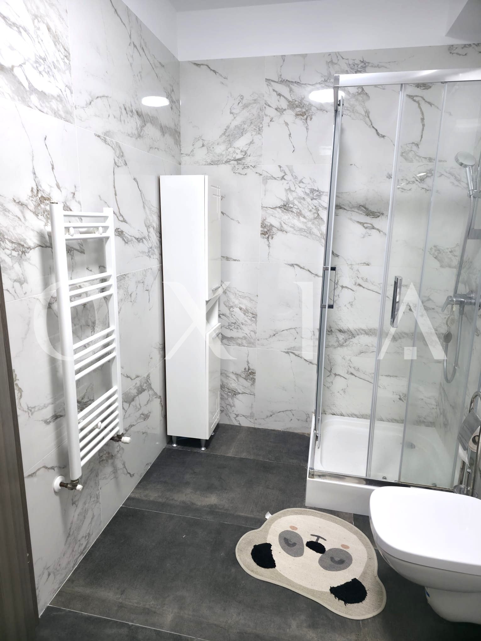 Apartamentul beneficiaza de amenajari premium: usa metalica la intrare, usi interioare celulare, placi de gresie si faianta, parchet laminat, ferestre PVC cu geam termopan, vopsea lavabila.