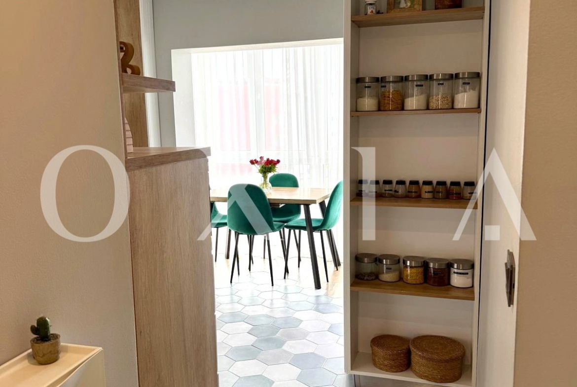 Apartamentul a fost renovat complet (instalatie elecrica si sanitara, pereti indreptati, sapa) si dispune de finisaje moderne: placi de gresie/faianta, ferestre PVC cu geam termopan, usi interioare celulare, usa intrare metalica, vopsea lavabila, etc.
