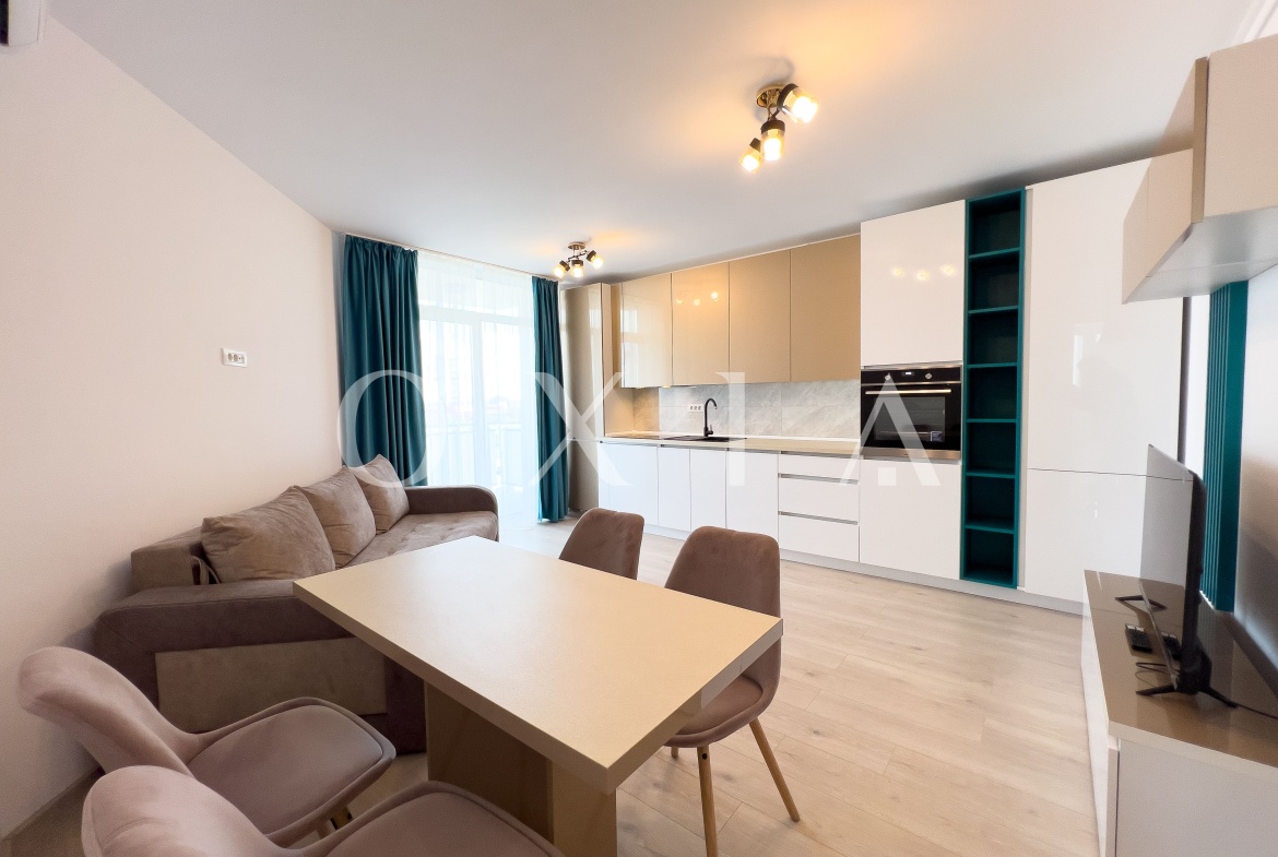 OXIA prezinta spre inchiriere apartament cu 2 camere in Timisoara, zona Soarelui, situat la etajul 5 din 8 ( bloc nou 2023, cu doua lifturi ), cu suprafata de 45 mp + 3 mp terasa, compartimentat astfel: