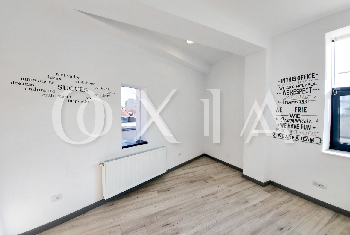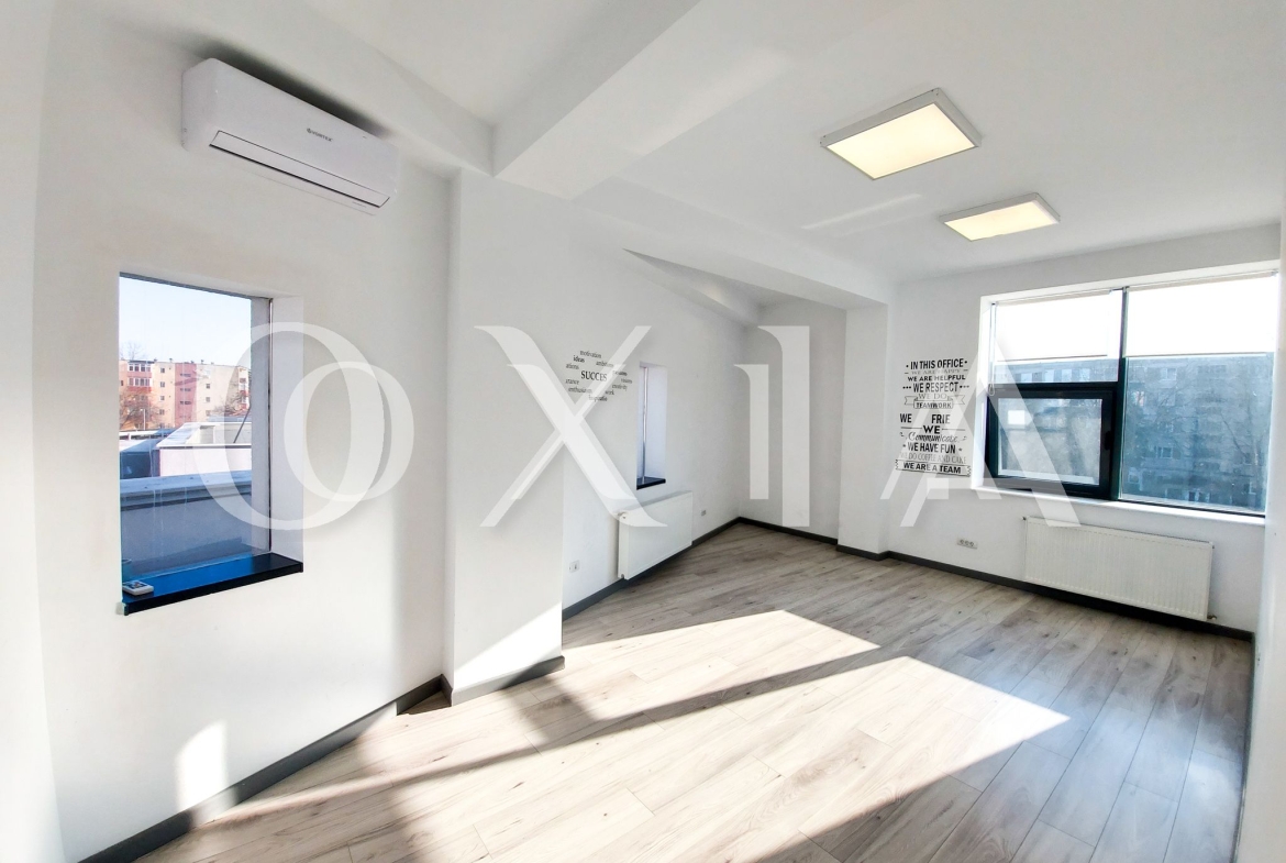 Biroul se inchiriaza nemobilat. Spatiile comune sunt mobilate si utilate.