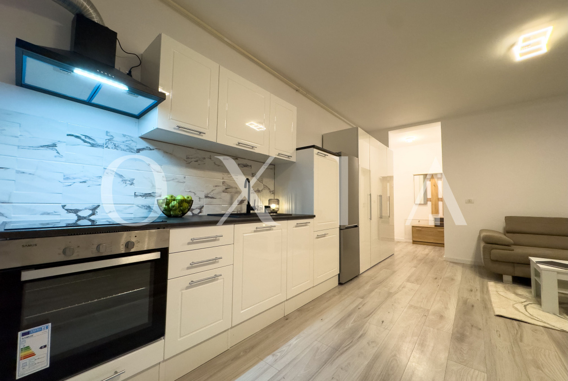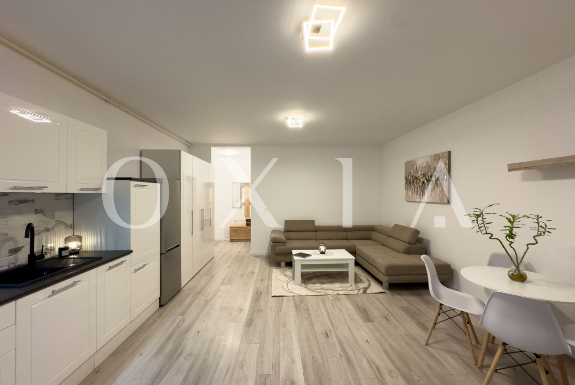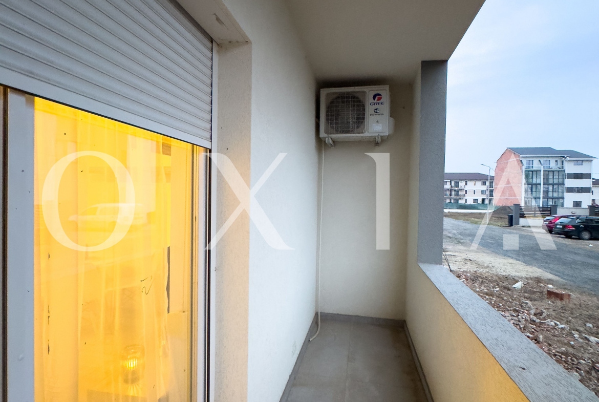 OXIA ofera in exclusivitate spre inchiriere apartament tip studio in Giroc, Cartierul Planetelor ( hotel IQ ), situat la parterul unui imobil P+2E+M, cu suprafata de 36 MP utili, compartimentat astfel: