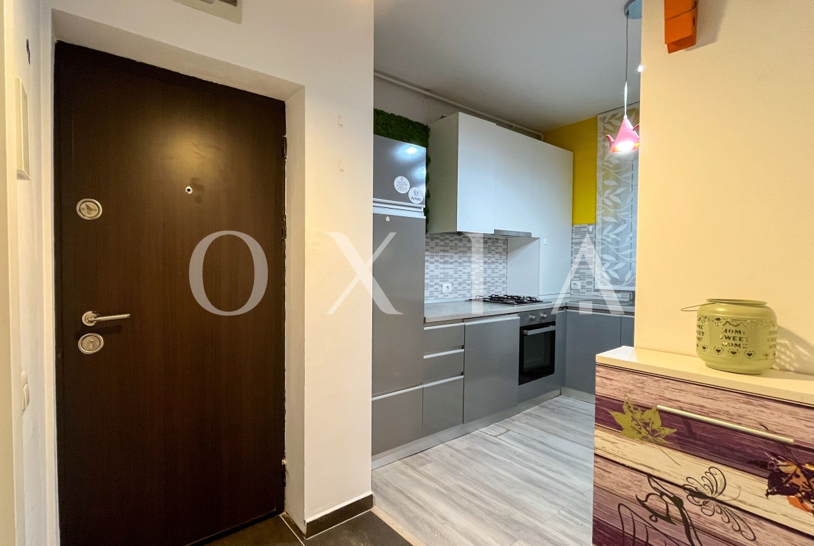 OXIA prezinta spre vanzare apartament cu 2 camere, situat in Timisoara, zona Braytim, in vecinatatea benzinariei Eso, la etajul 4/8, imobil dotat cu 2 lifturi, decomandat, cu suprafata de 37.03 mp utili+ 4.84 mp balcon, compartimentat astfel: