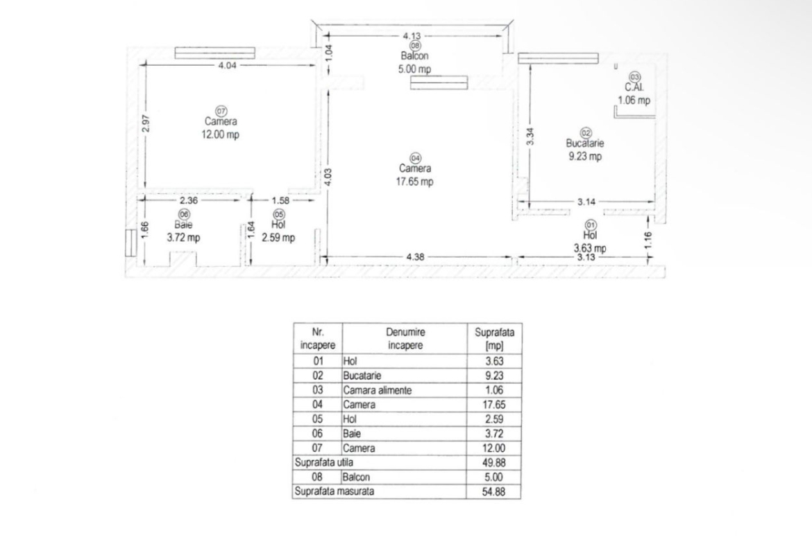 OXIA ofera in exclusivitate spre vanzare un apartament cu doua camere situat in Timisoara, strada Intrarea Lugojului , situat la etajul III, intr-un imobil P+4E+M, semidecomandat, cu suprafata de 55 MP ( 50 MP utili +5 MP balcon ), compartimentat astfel :