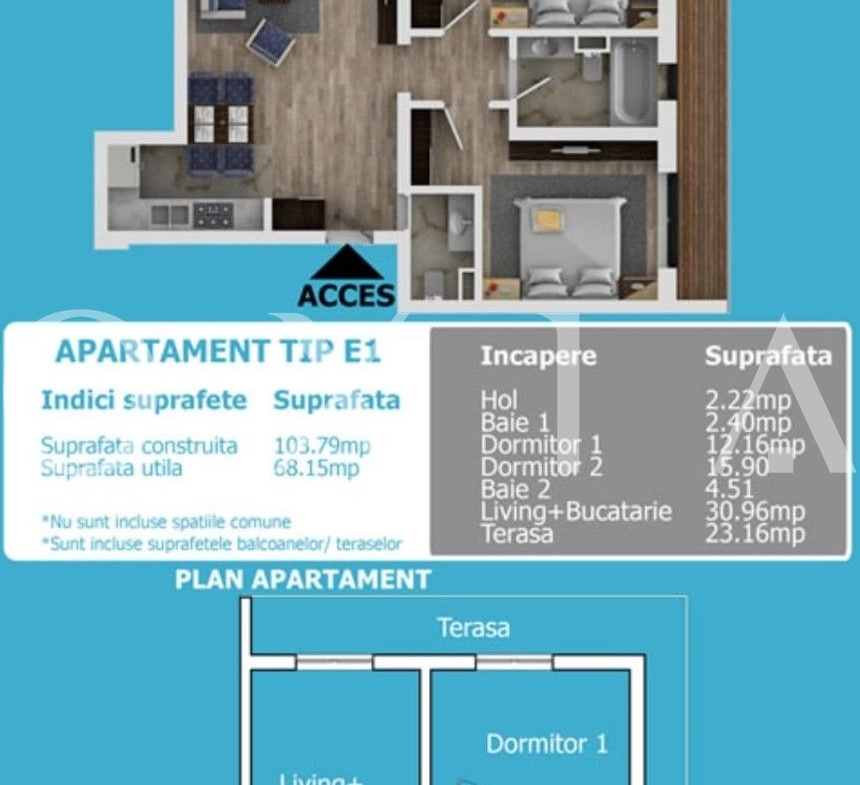 – terasa spatioasa cu acces din dormitoare si living