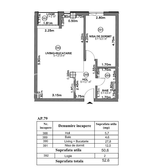 OXIA prezinta spre vanzare apartament cu 2 camere in Timisoara, zona Torontalului, Campeador Residence, situat in imobil cu regim de inaltime P+7, cu suprafata de 52,6 mp + 2mp balcon tip logie, compartimentat astfel: