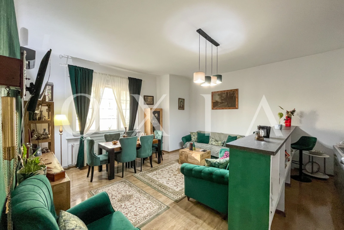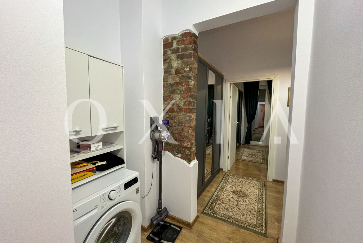 Apartamentul se afla intr-o cladire istorica, cu inaltime impresionanta de 3 m, avand spatii generoase, lumina naturala din plin si un farmec aparte dat de detaliile arhitecturale originale.