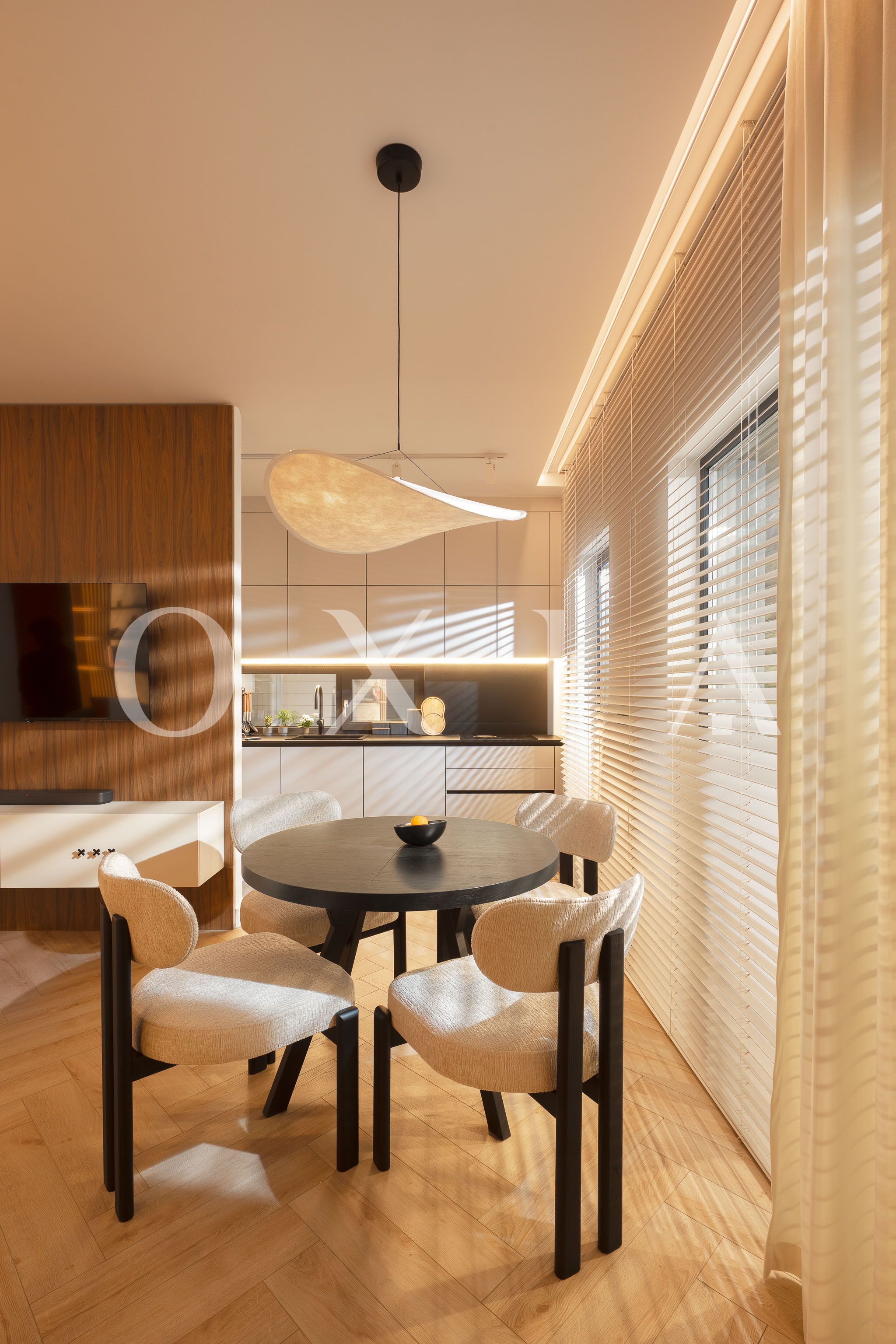 Aceasta este a doua proprietate realizata ca si concept de OXIA LUXURY ESTATE, fiind un nivel urmator primului proiect realizat si implementat in Timisoara – Harmony apartment – apartament care a luat doua premii de design si a fost vandut sub acelasi concept de utilare completa in doar 6 luni.