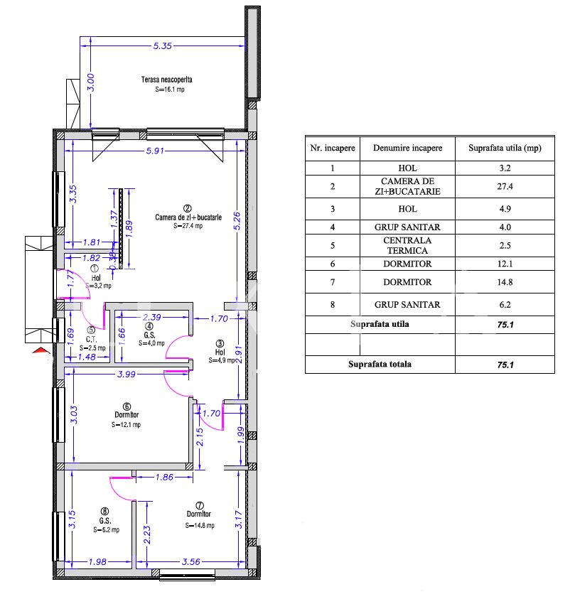 Confort termic asigurat de centrala Bosch si sistemul de incalzire in pardoseala Ferroli, completat de climatizare 12.000 BTU