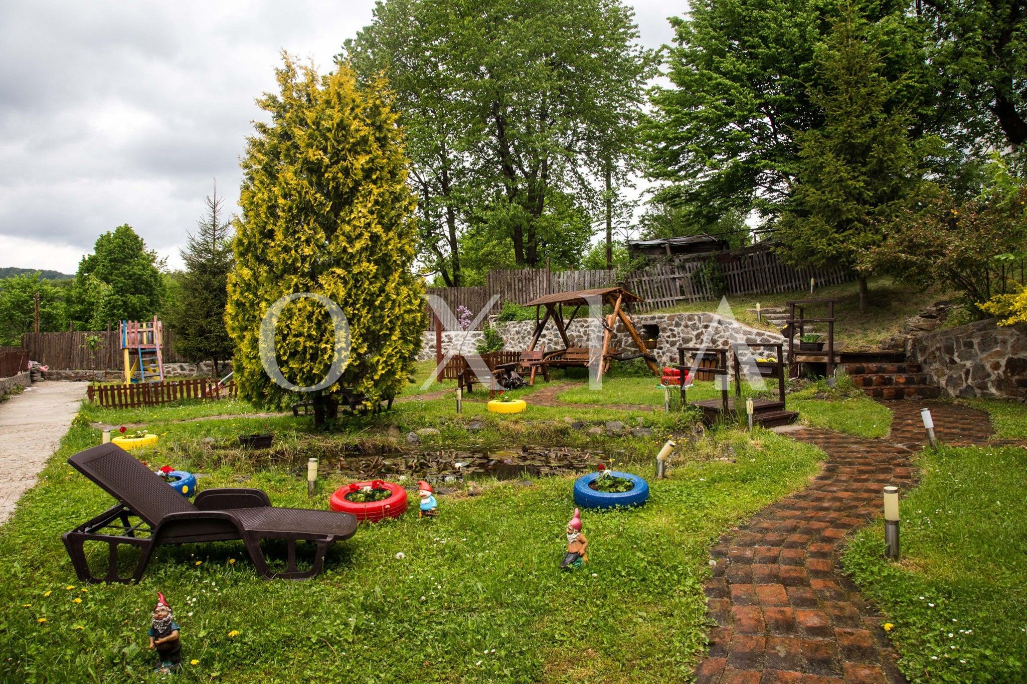 • Gradina amenajata cu lac de nuferi, loc de joaca pentru copii, foisor si zona pentru gratar