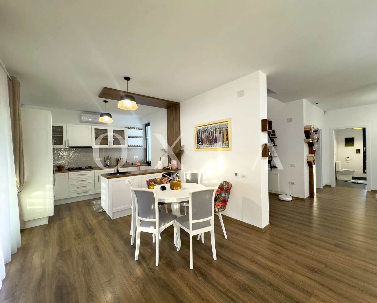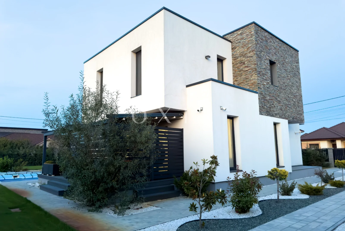 OXIA prezinta o proprietate exclusiva spre vanzare in Mosnita Noua (langa Valery), o casa individuala moderna, cu regim de inaltime P+E, amplasata pe un teren generos de 1.340 mp si cu doua fronturi stradale de 65 m. Suprafata utila de 160 mp este atent compartimentata pentru a oferi confort si rafinament.