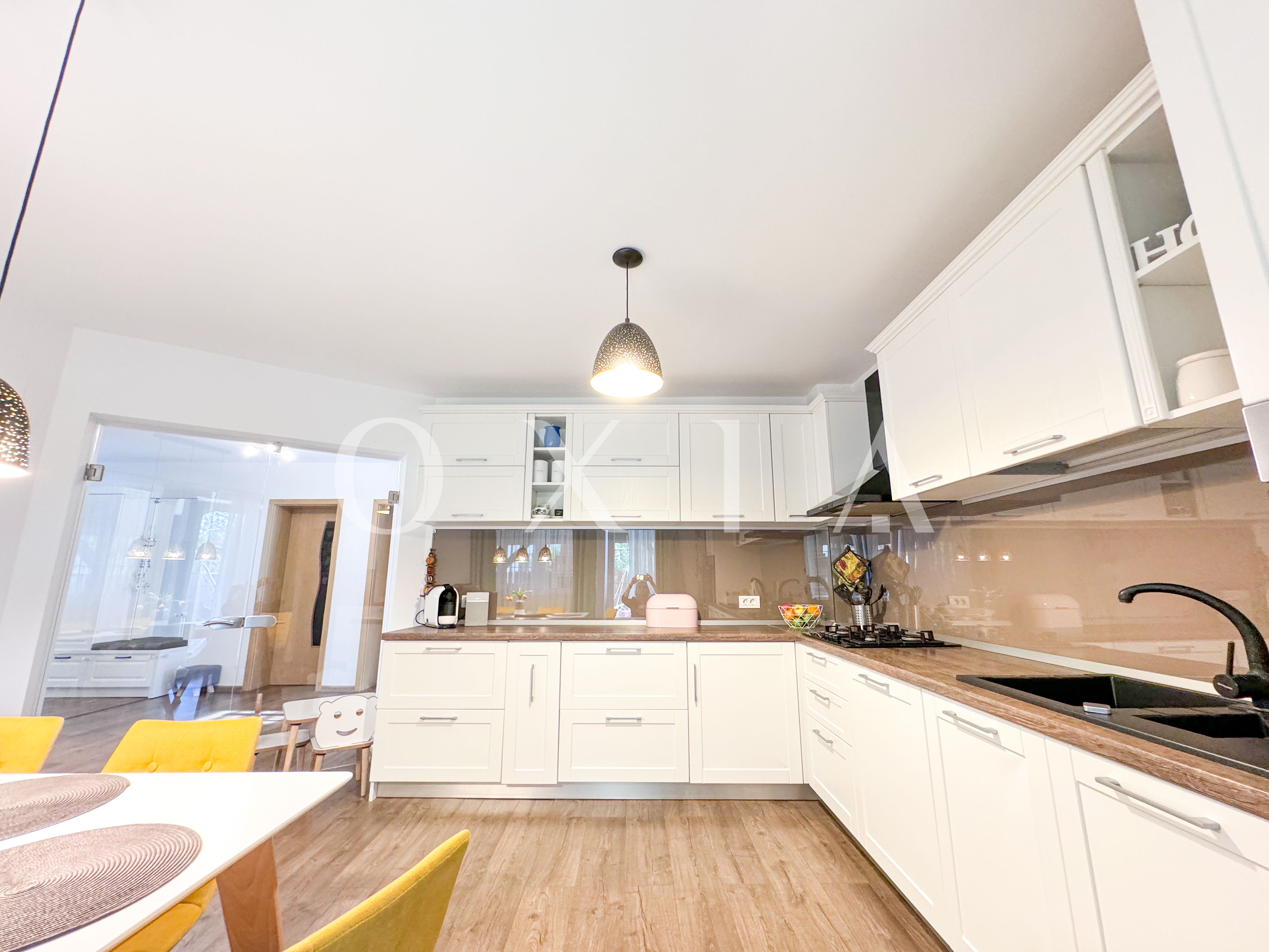 Spatiul exterior este amenajat cu gazon si sistem de irigare automatizat, alei pavate si o terasa acoperita spatioasa cu zona de barbeque.
