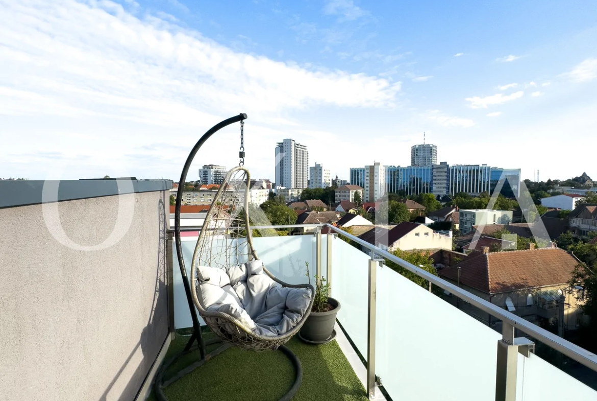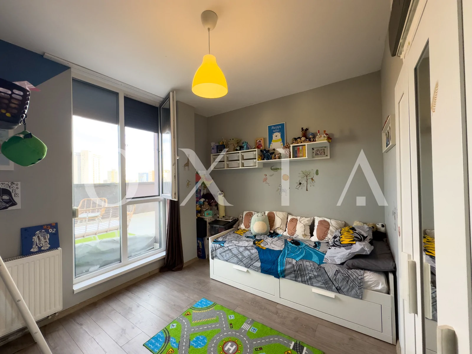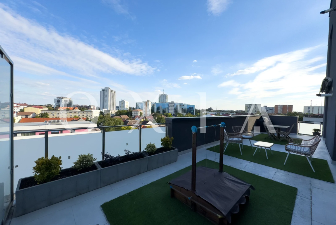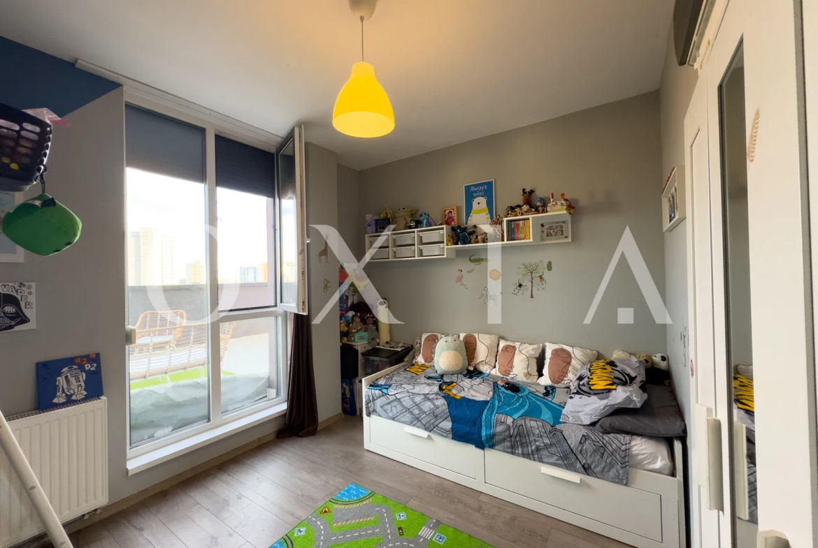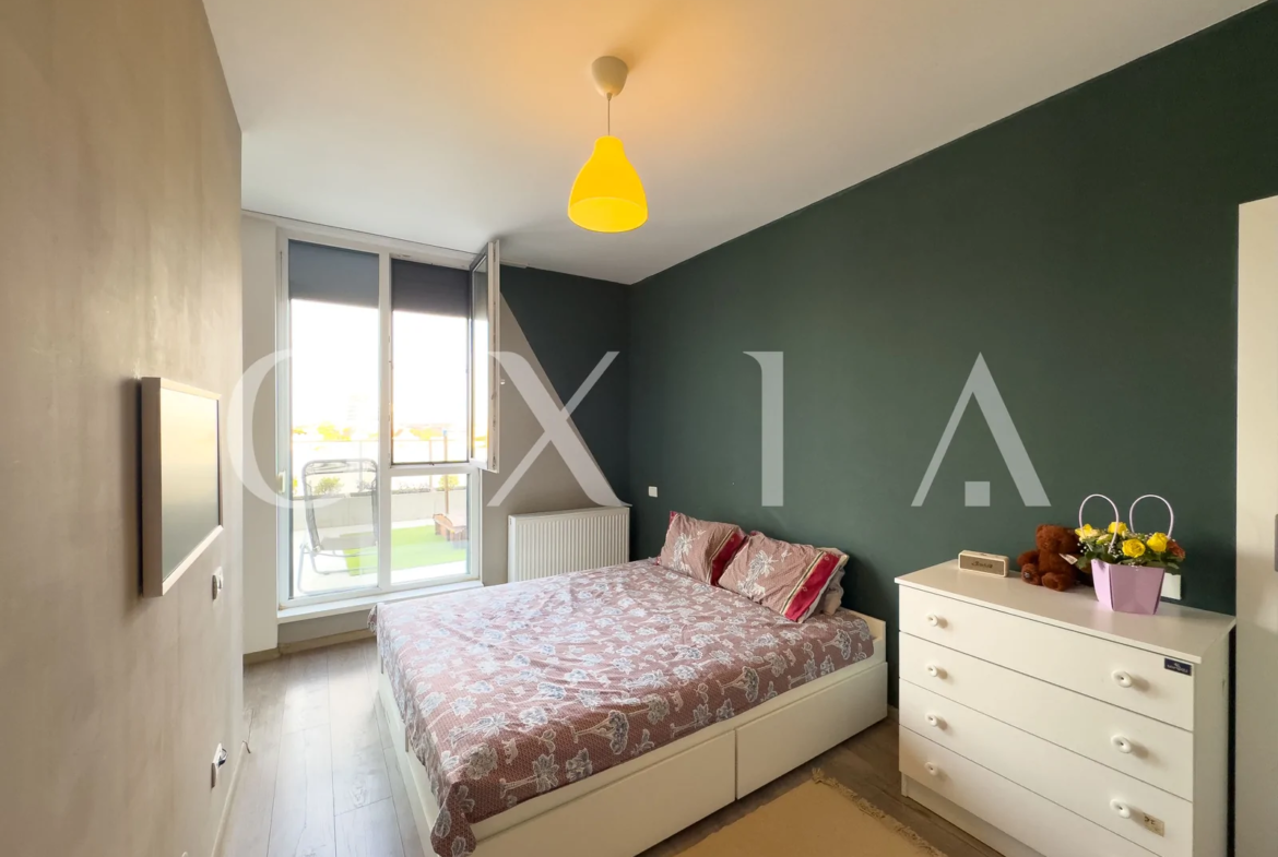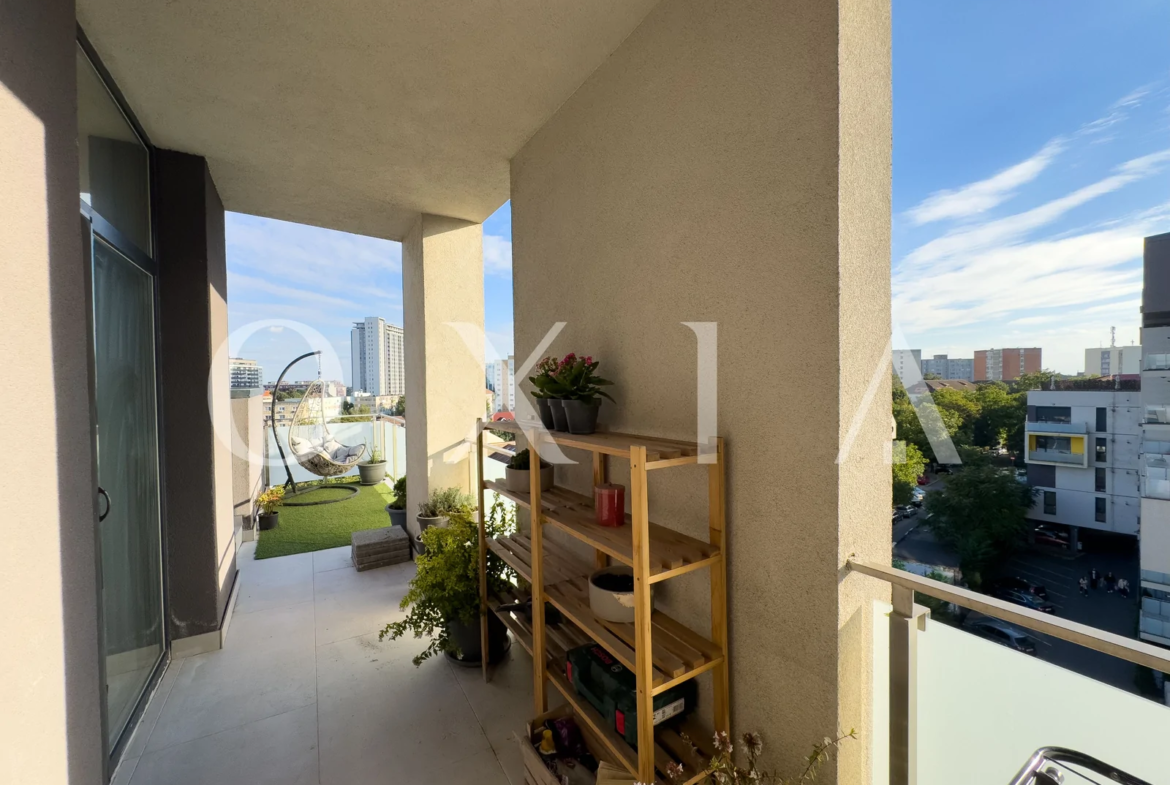 Apartamentul este amplasat la etajul 5 si are o suprafata construita de 122 mp, suprafata utila de 67 mp, completata de o terasa generoasa de 43 mp si un balcon de 13 mp, oferind spatiu amplu pentru relaxare si petrecerea timpului in aer liber.