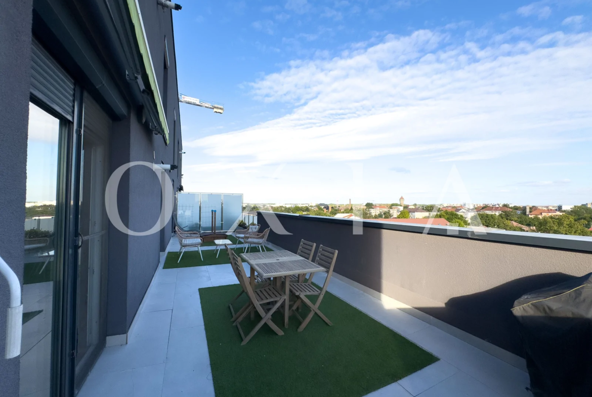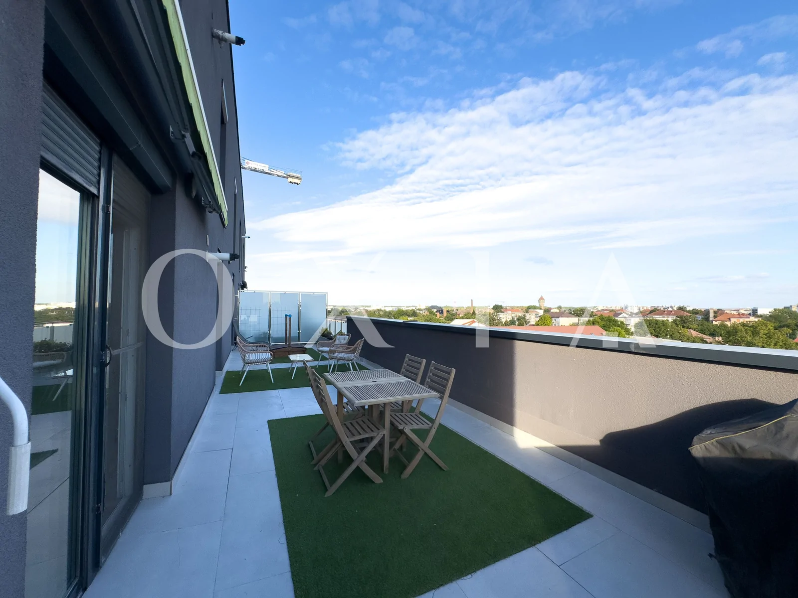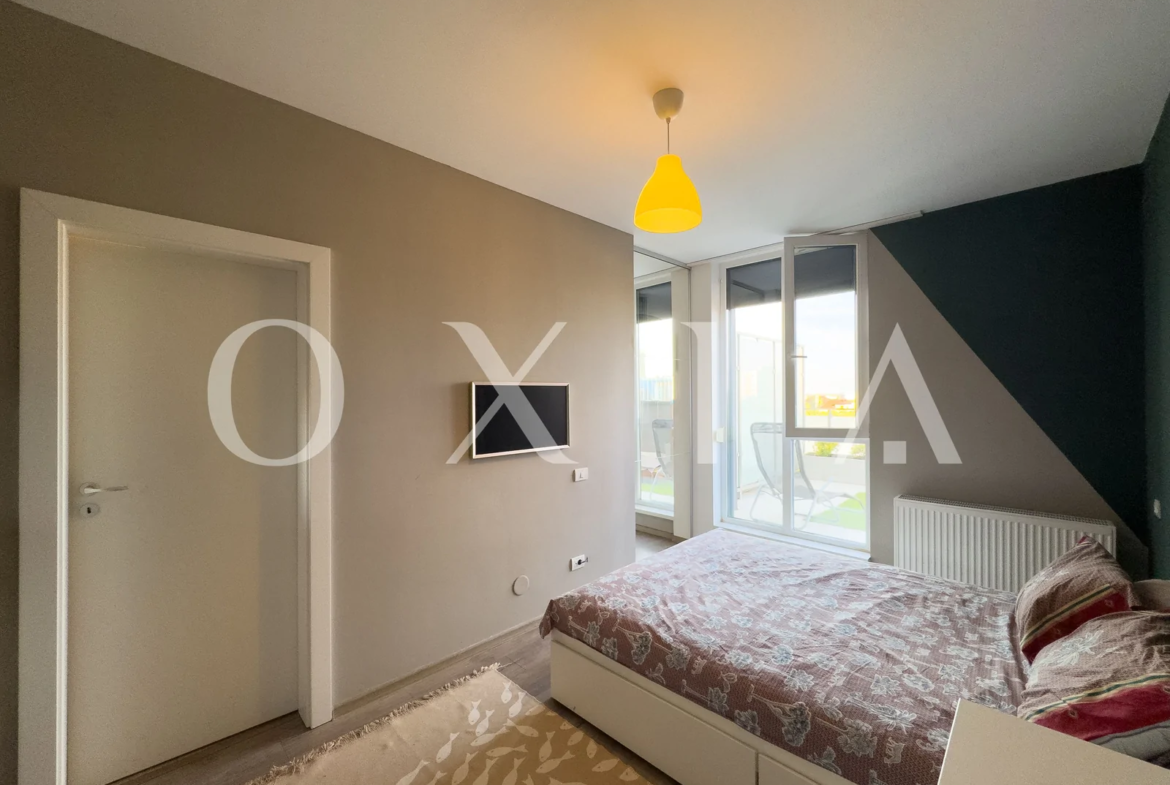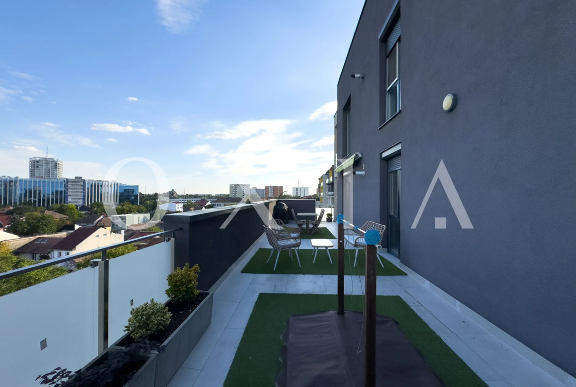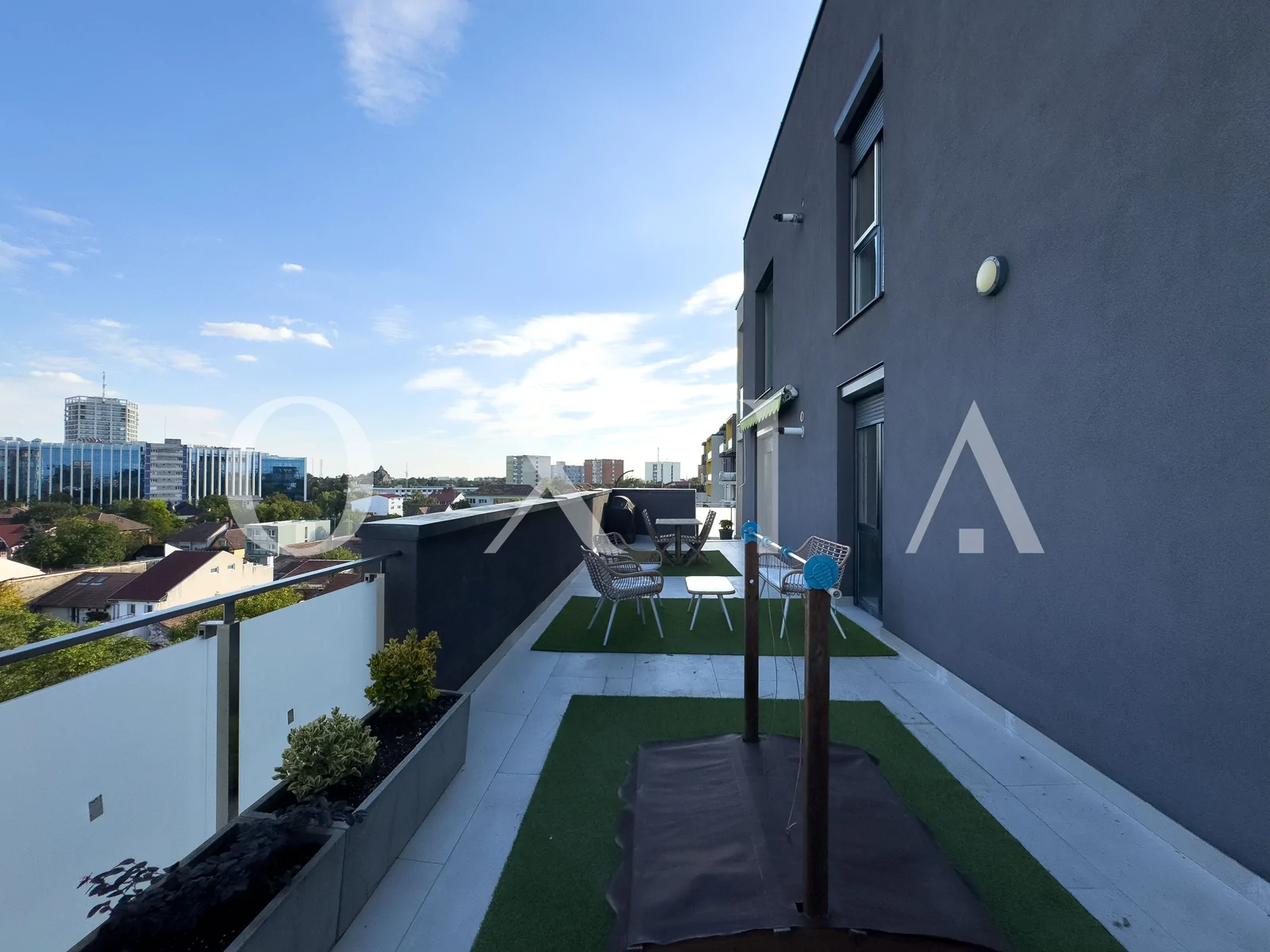 Apartamentul este amplasat la etajul 5 si are o suprafata construita de 122 mp, suprafata utila de 67 mp, completata de o terasa generoasa de 43 mp si un balcon de 13 mp, oferind spatiu amplu pentru relaxare si petrecerea timpului in aer liber.