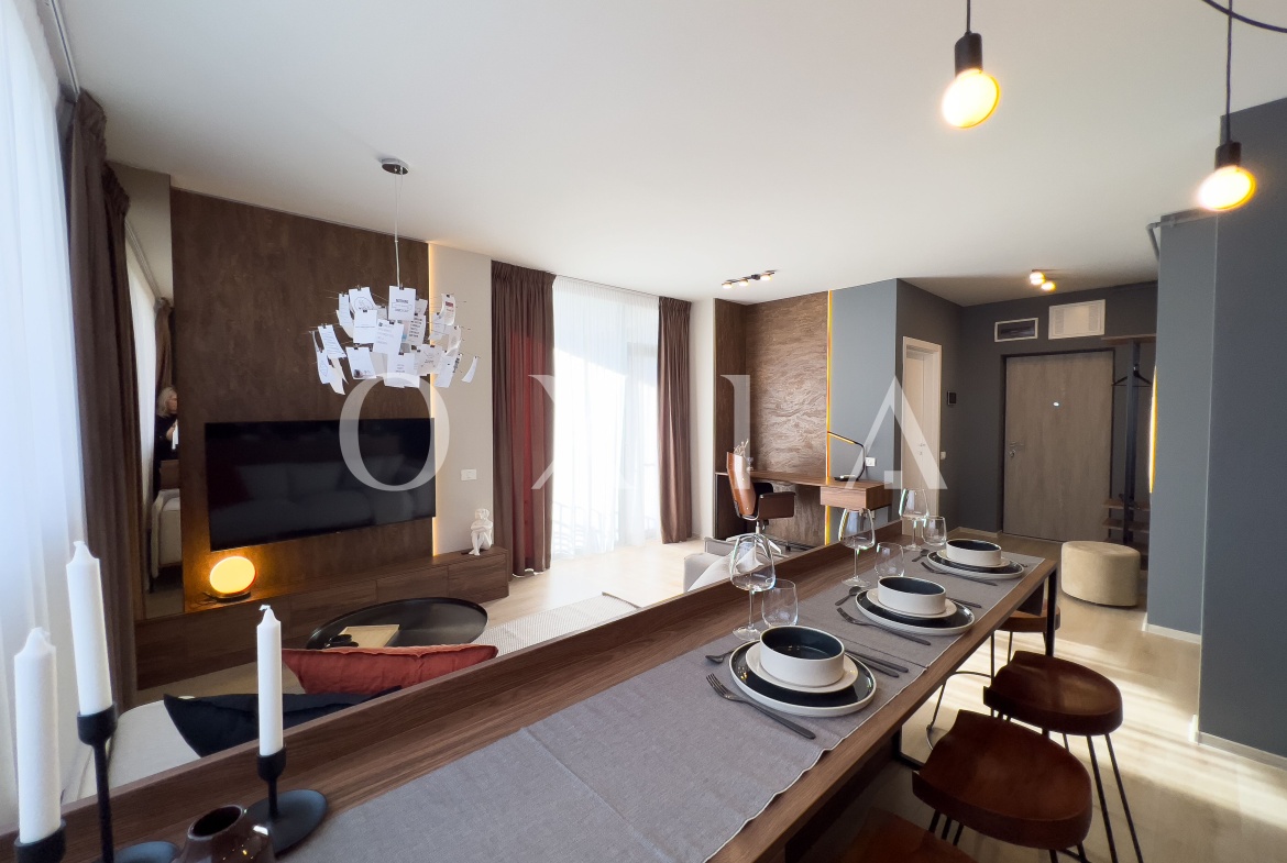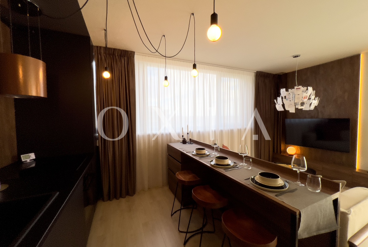 Un aspect remarcabil al acestei proprietati este faptul ca este noua si este la prima inchiriere. Designul interior, realizat de un specialist, imbina functionalitatea cu estetica, creand un ambient modern.