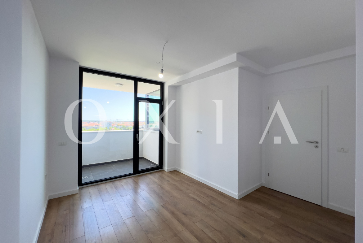 OXIA prezinta in exclusivitate spre vanzare apartament cu trei camere in Timisoara, zona Torontalului, ansamblu rezidential XCity Towers, la eajul 10 din 16 (imobil cu doua ascensoare), cu suprafata de 70 mp plus 4 mp balcon, compartimentat astfel: