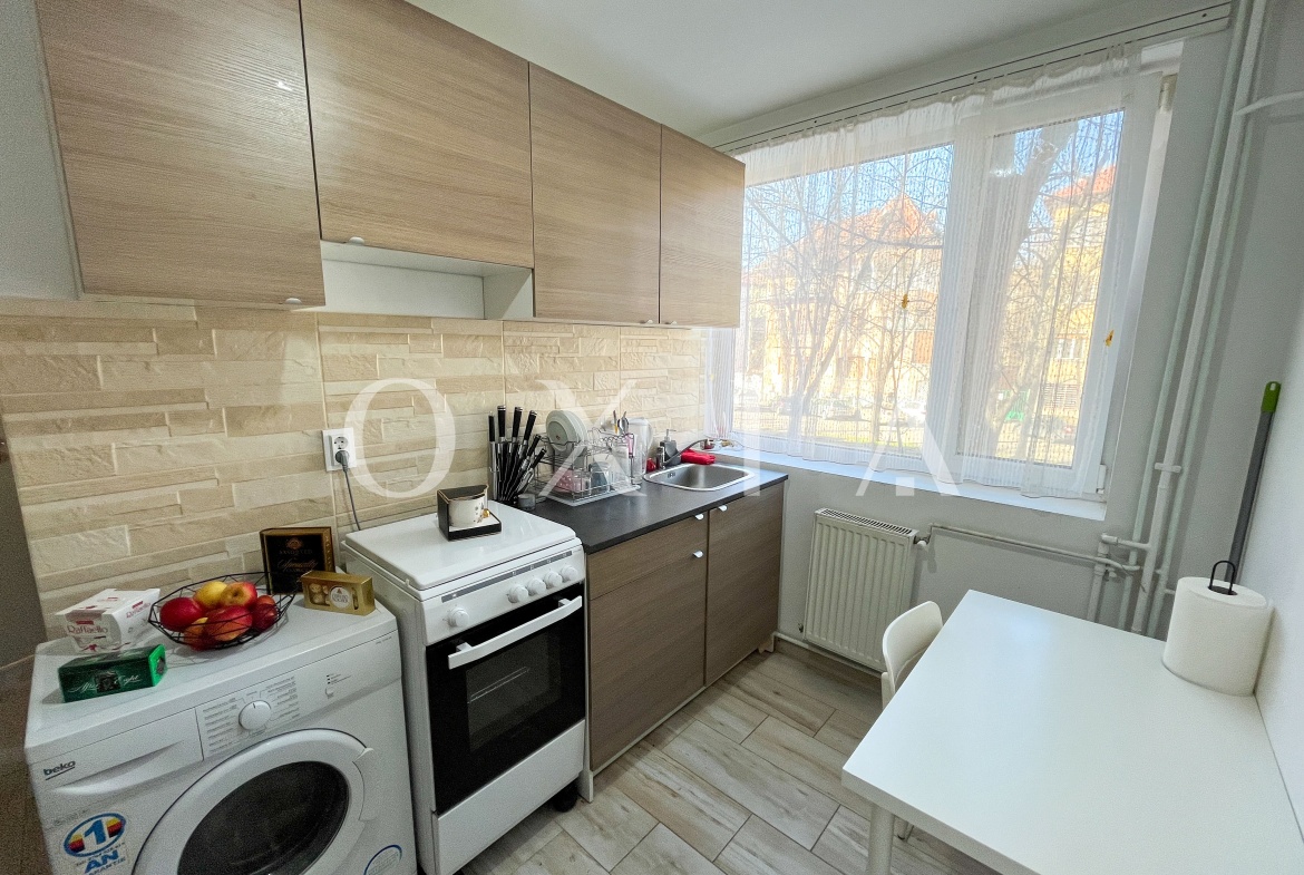 OXIA prezinta in exclusivitate spre vanzare apartament cu 2 camere in Timisoara, zona Medicina, langa Consiliul Judetean, situat in imobil P+4E, la etajul I, decomandat, cu suprafata de 45.28 MP utili + 4 MP balcon, compartimentat astfel: