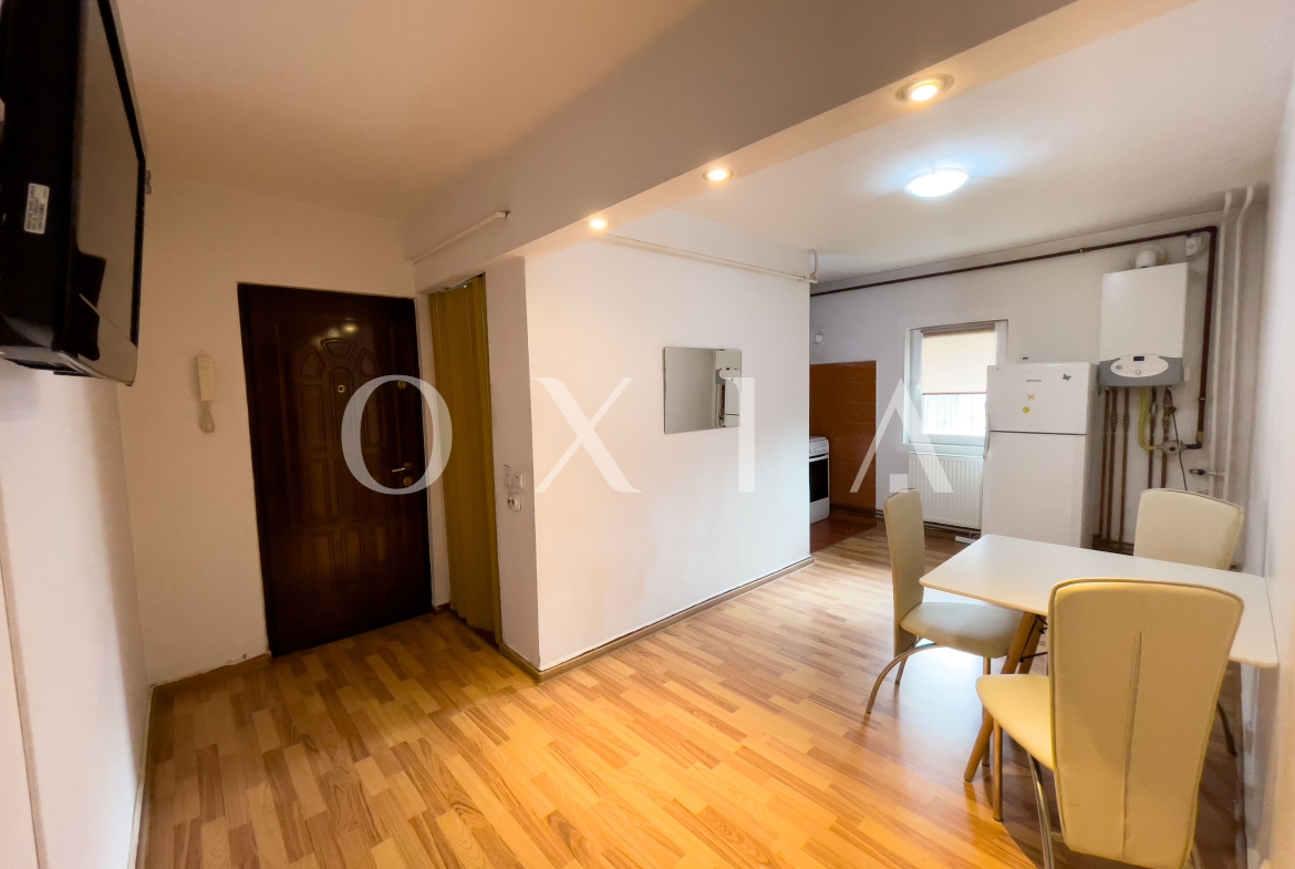 OXIA prezinta spre inchiriere apartament cu 2 camere in Timisoara, zona Modern, strada Viorelelor situat la parterul unui bloc cu 4 etaje, decomandat, cu suprafata de 55 MP, compartimentat astfel: