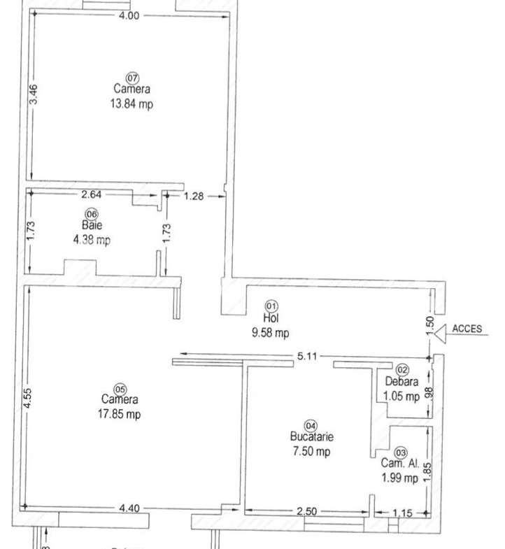OXIA prezita in exclusivitate spre vanzare in zona Timocului, strada Ion Creanga, apartament cu 2 camere, situat la etajul 3 din 4, decomandat, cu suprafata utila de 56,19 MP, cea construita de 64,61 MP, compartimentat astfel: